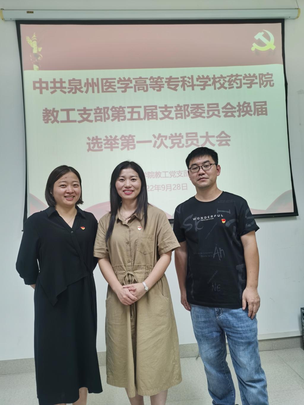 会议按照选举议程,在充分酝酿下届支部委员会候选人的基础上,采取无记名投票的方式,差额选举产生了新一届党支部委员和书记。陈惠芳、廖婉婷和黄刚三位同志当选药学院教工党支部委员。大会休会期间,新一届支部委员会召开了第一次支委会全体会议,会议讨论产生了新一届支部委员会书记及委员分工。陈惠芳同志当选为药学院教工党支部书记,廖婉婷同志为药学院教工党支部组织委员,黄刚同志为药学院教工党支部宣传委员兼纪检委员。