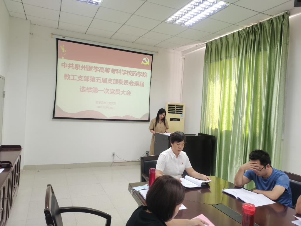 为进一步加强党的基层组织建设,发挥党支部战斗堡垒作用和党员先锋模范作用,增强党组织的创造力、凝聚力和战斗力,根据《中国共产党章程》《中国共产党基层组织选举工作条例》和《中国共产党普通高等学校基层组织工作条例》的相关规定,经药学院党总支同意,9月29日下午,药学院教工党支部在药学院北教学实验楼六楼会议室顺利召开支部换届选举党员大会。本次应到会党员同志33人,实到会党员同志27人,请假6人,会议由药学院教工党支部书记陈惠芳同志主持。