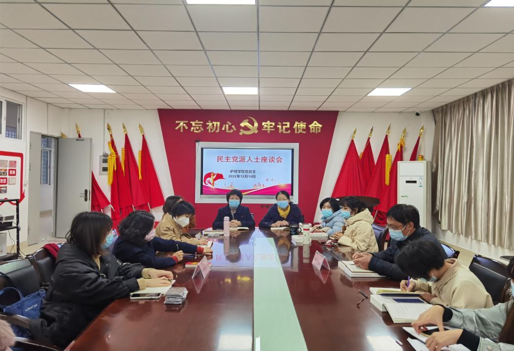 为深入学习贯彻党的二十大精神,汇聚推动学院发展及专业升本工作的强大合力,2022年12月14日下午,护理学院党总支于南附属楼308召开民主党派人士座谈会,广泛听取民主党派人士意见和建议。会议由党总支书记洪迎迎主持,民主党派教师及教师党员代表参加会议。