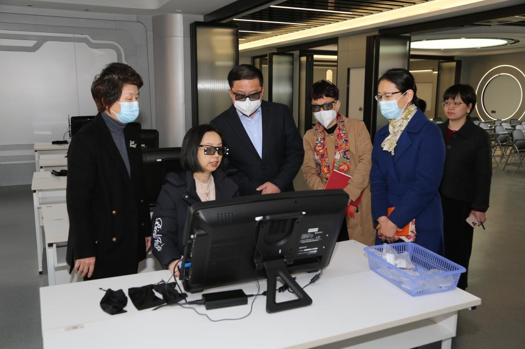 在国家医学虚拟仿真实训基地,李书记认真听取工作人员关于基地建设情况、校企合作研发软件及专利成果等介绍,体验VR教学+实操的虚拟仿真示范实训。他指出,医学虚拟仿真技术打破传统实践教学,虚实结合、相辅相成,延展了学生实训的时间和空间;叮嘱护理学院在此基础上,找准切入点,把握着力点,深挖平台优势,拓展研发范围,融合基础护理学、康复学等,实现“理、虚、实”一体化的再创新再提升。