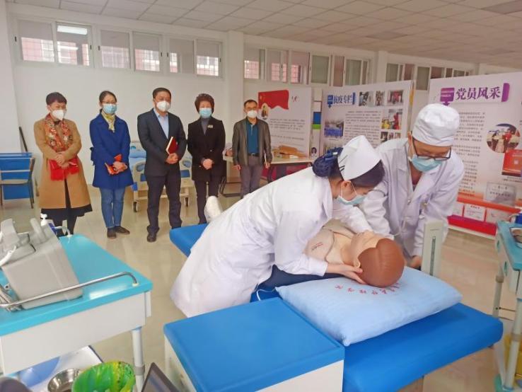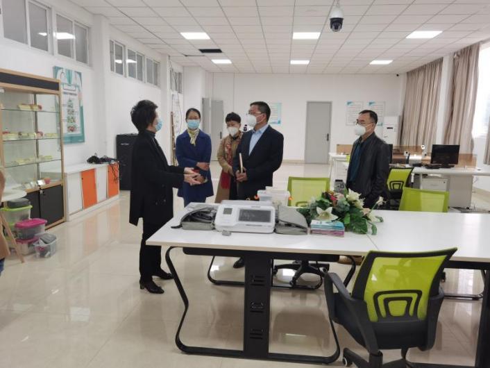 在老年康复护理实训中心,李书记详细了解学校与泉州市丰泽社区合作开展社区慢病老人的远程照护服务项目。自2016年起,中心为丰泽社区100位慢病老人免费配备远程健康监测设备,提供老年病健康咨询服务。近年来,我院每周两次组织师生到社区开展健康志愿服务,居民们踊跃参与,活动受到社区居民的一致好评。李书记表示,随着国家人口老龄化趋势的逐渐显现,老年人的健康生活是党和国家始终重视的一件民生工程,作为医学院校,我们有责任把承担培养养老服务人才的任务扛在肩上,记在心里。李书记强调,学院要下沉社区,持续推进共建项目,赋能“党建+”社区邻里工作,让师生的专业技术服务更广大的群众,讲好学校健康服务品牌故事。