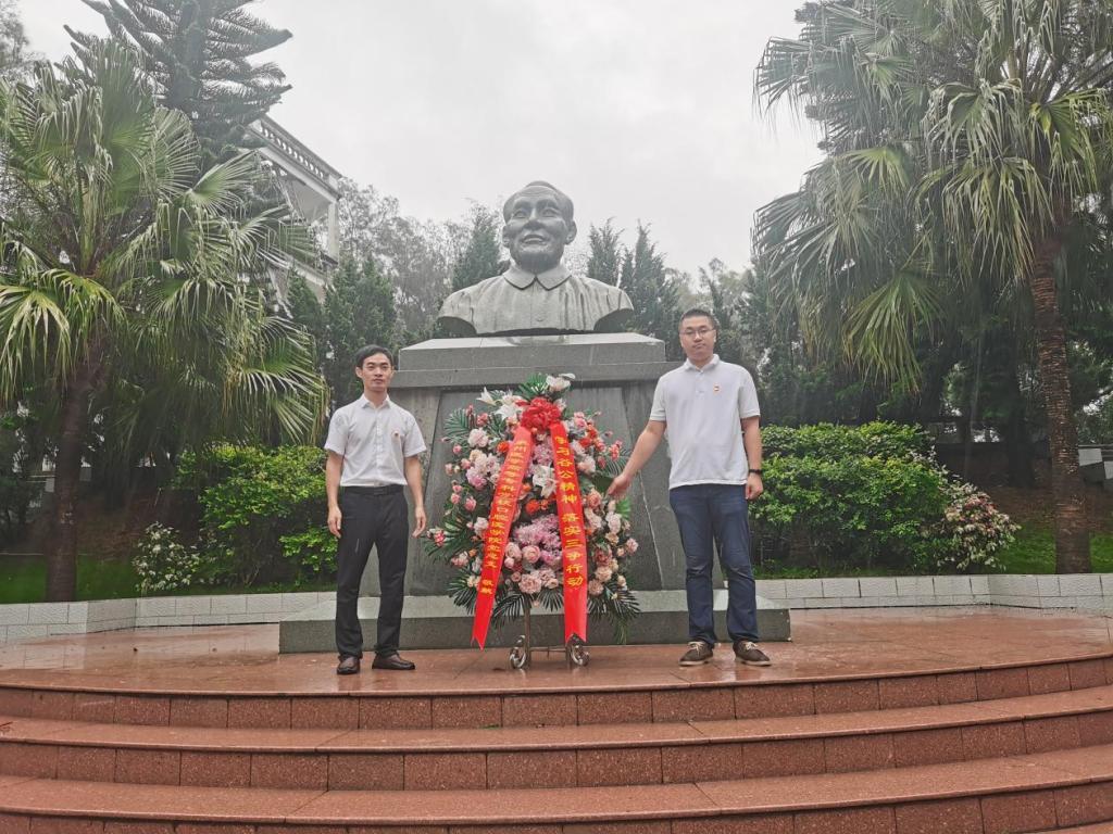 在“谷文昌纪念园”现场教学点,全体党员通过瞻仰谷文昌纪念碑、参观谷文昌纪念馆,重温谷文昌带领东山军民与严酷恶劣的自然环境作斗争的风雨历程和艰苦创业精神,深深感悟了谷文昌同志“为民高攀一把伞,为民敢扛一片天”的勇敢担当。场馆参观结束后,全体党员合唱红歌《团结就是力量》。随后,瞻仰谷文昌塑像,进行了敬献花篮仪式,致敬“四有”书记谷文昌。
