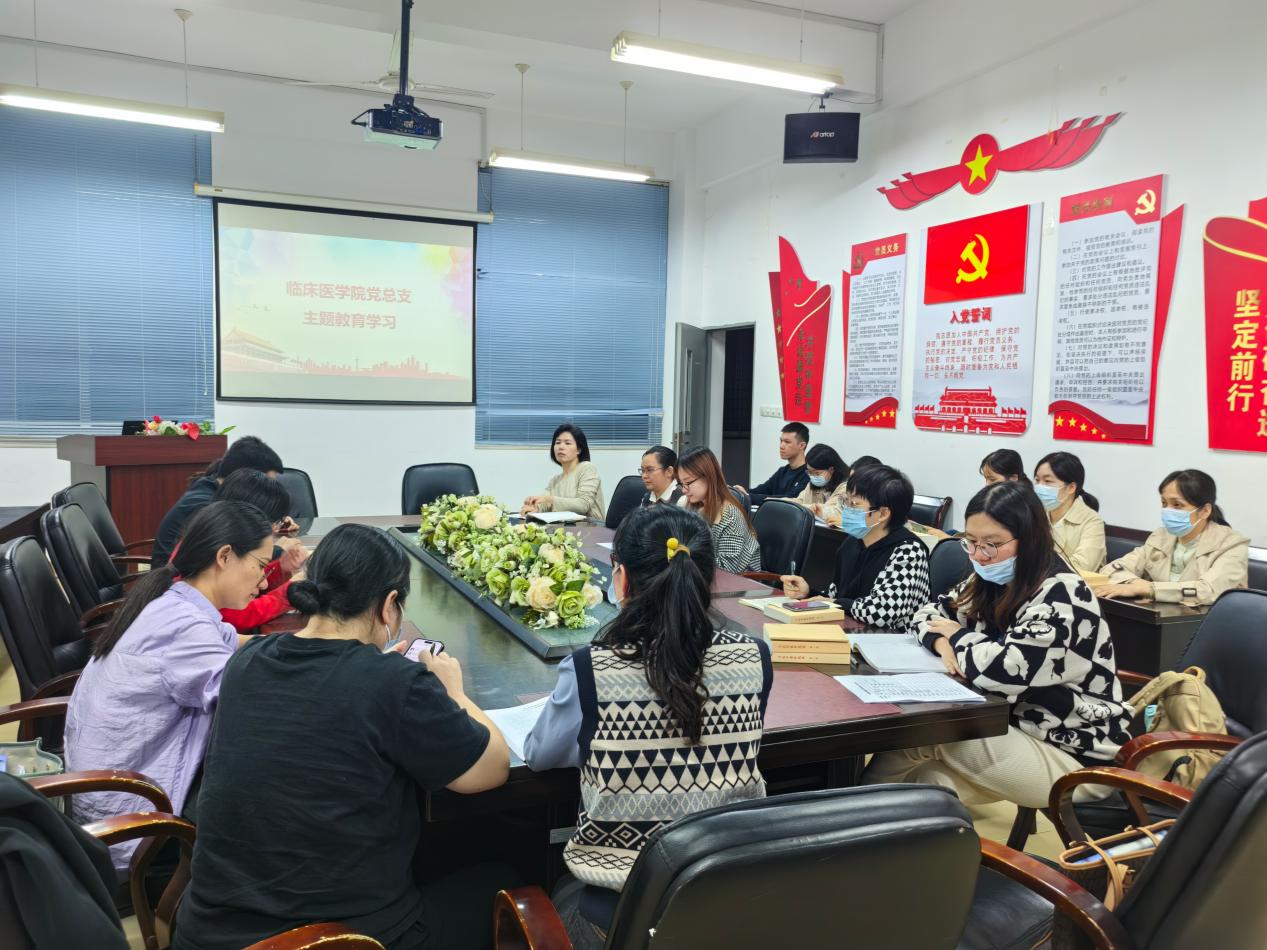 为深入学习贯彻习近平新时代中国特色社会主义思想和党的二十大精神,推动主题教育走深走实。11月15日,临床医学院党总支在学院会议室举行党员主题教育学习会,张作丹副书记主持,全体党员参会。
