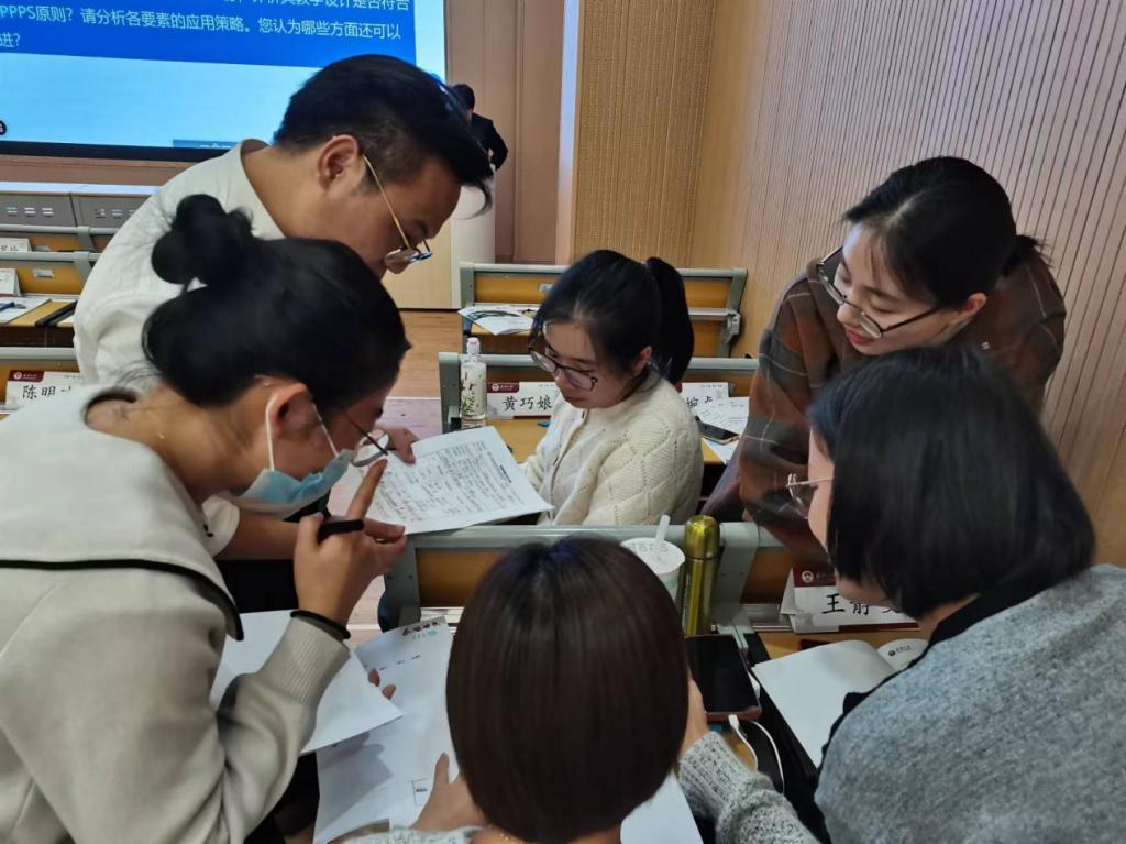 武汉大学基础医学院何春燕副教授作《BOPPPS有效课堂教学实施》的分享,她把班级分为若干个小组,利用雨课堂在线平台,根据课程的讲授内容,各位学员撰写教案,并上传至平台向所有学员展示,由何春燕副教授点评解说,真正做到现学现用,课堂讨论气氛热烈。
