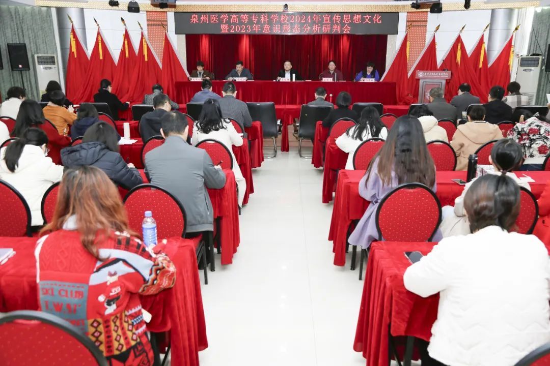 为深入学习习近平新时代中国特色社会主义思想和习近平总书记对宣传思想文化工作的重要指示批示精神和党的二十大精神,推动学校宣传思想文化工作实践创新,推动学校思想政治工作提质增效,2024年1月5日,泉州医学高等专科学校召开2024年宣传思想文化暨2023年意识形态分析研判会,总结2023年学校宣传思想文化工作,部署2024年宣传思想文化工作,并对2023年意识形态工作进行分析研判。校领导,各行政部门负责人,院部党总支书记、分管学生工作副院长,全体辅导员参加会议,校党委委员、副校长苏成安主持会议。