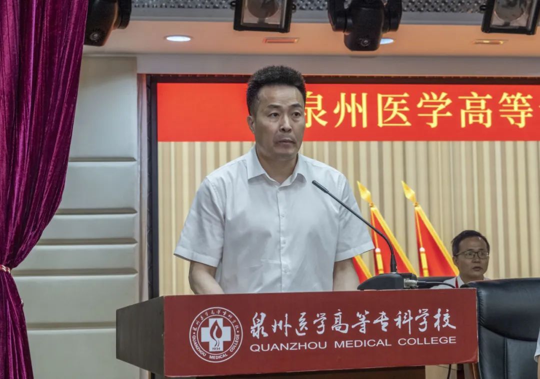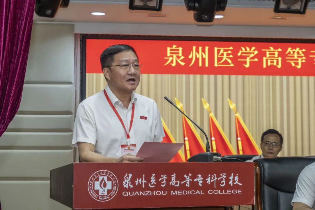 泉州医学高等专科学校第四次工会会员代表大会于2024年5月26日在洛江校区召开。泉州市教育局二级调研员、教育工会主席郑建聪应邀出席。学校领导,正式代表、列席代表以及特邀代表参加了会议。会议由校党委委员、副校长陈贤毅主持。