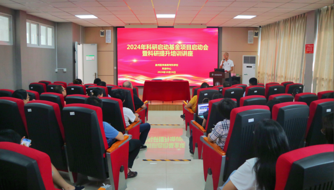 On the afternoon of October 16th, 2024, Quanzhou Medical College successfully held the kick-off meeting of high-level talents' scientific research start-up foundation and the lecture on scientific research promotion training. The college science and technology center, personnel department, project leaders of research start-up foundation and young and middle-aged key teachers attended the meeting, which was presided over by Professor Xu Rong, deputy director of the science and technology center.