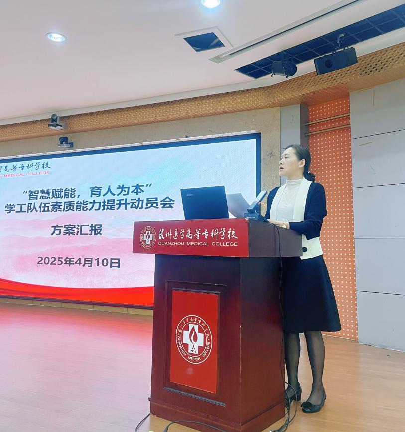 在当下,随着高等教育改革持续深化,AI技术迅猛发展,学生思想观念愈发多元。为积极顺应教育发展趋势,进一步提升我校学工队伍的综合素质与专业能力,2025年4月10日上午,我校在信息楼十二楼多功能厅召开“智慧赋能,育人为本”学工队伍素质能力提升动员会。校党委副书记王翠玲、全体学工队伍老师参加了会议。会议由学生工作处副处长何素芳主持。