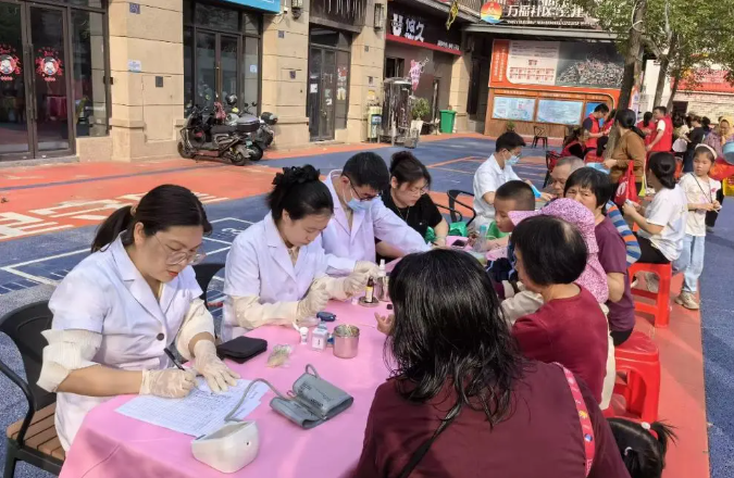 活动严格落实中央八项规定关于“改进工作作风、密切联系群众”的要求,提前与社区精准对接需求,简化流程、直奔主题。党员教师们一到现场便迅速搭建起“基础健康检测”“合理用药咨询”两个便民服务点,不搞形式、不走过场,直接面向居民提供“家门口”的专业服务。在基础健康检测区,教师们为居民免费测量血压、血糖,针对数据异常者,结合生活习惯和用药史,一对一提出饮食调控、运动管理等“看得见、用得上”的建议,避免“空泛指导”,让居民切实感受到服务的“温度”与“精度”。