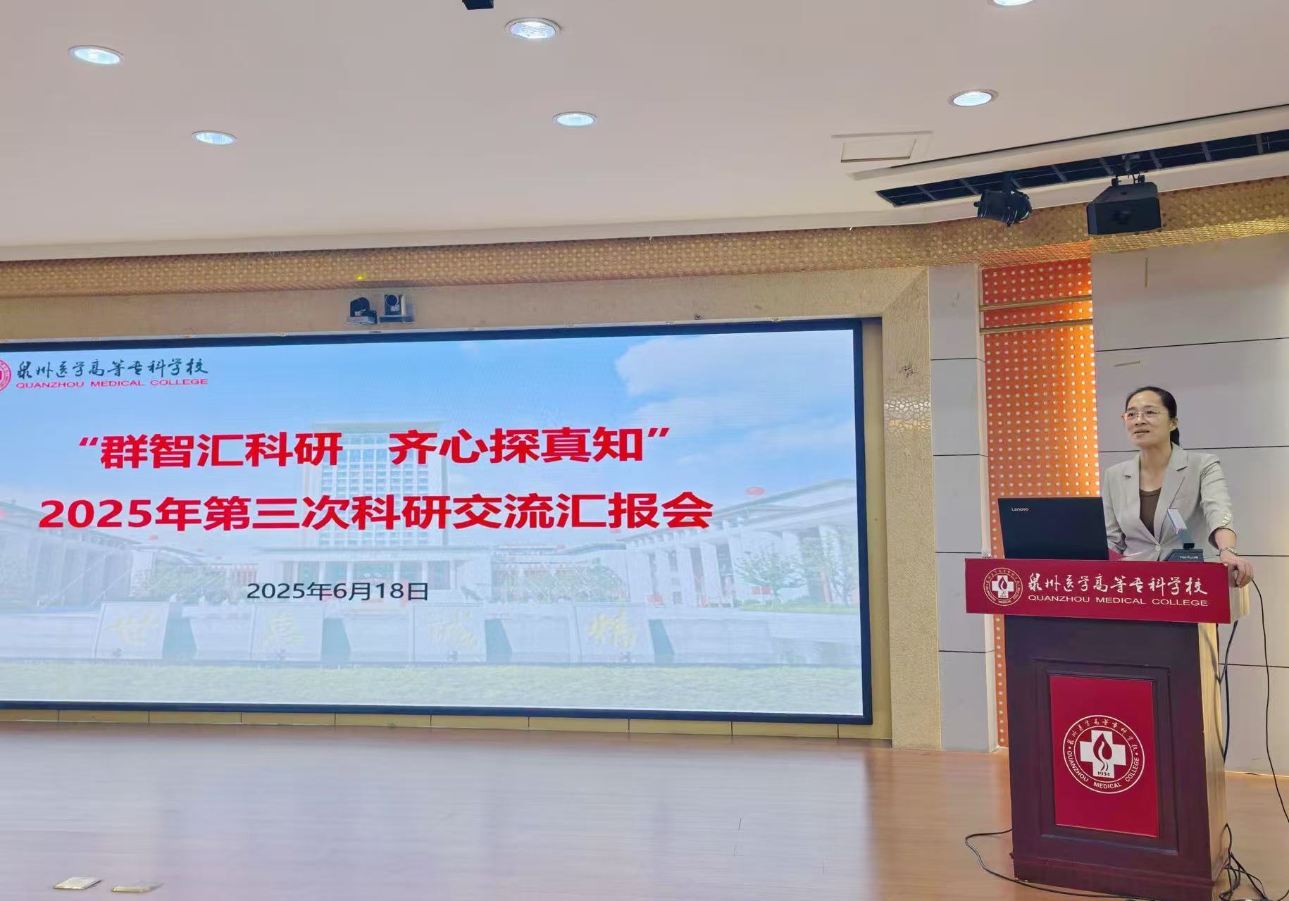 2025年6月18日,泉州医学高等专科学校在洛江校区信息楼十二楼多功能厅成功举办2025年第三次科研交流汇报会。本次会议由护理学院承办,主题为“群智汇科研·齐心探真知”。会议由副校长林迳苍主持,校党委书记李伯群、校长陈婉南、校党委副书记王翠玲等校领导、相关职能部门以及各院部负责人出席。会议特邀厦门大学医学院朱杰敏教授,与全校科研骨干教师共同探索科研新领域,分享研究成果。