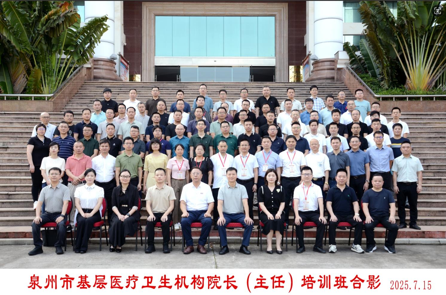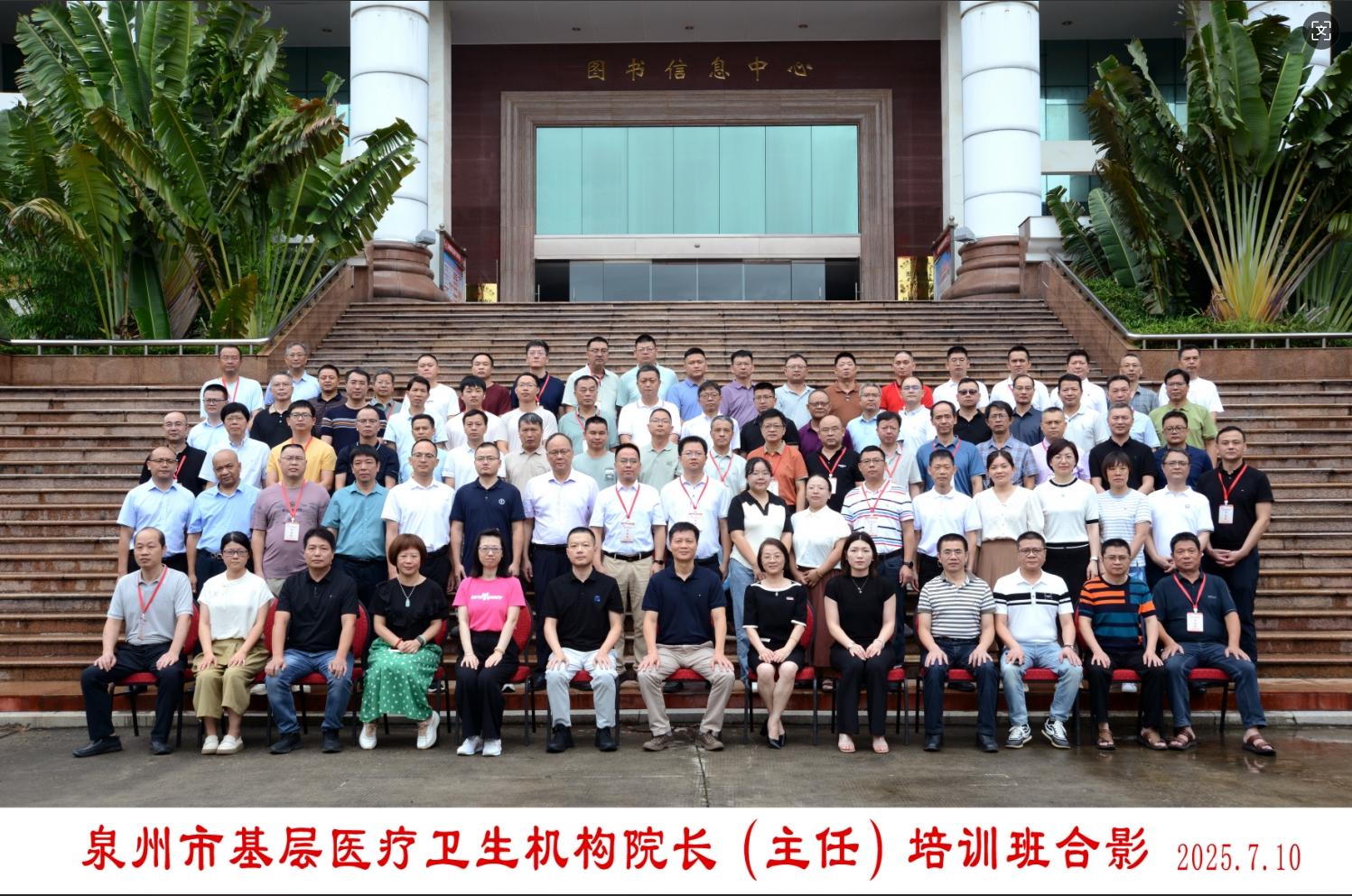 2025年7月10日至16日,由泉州市卫健委主办、泉州医学高等专科学校承办的全市基层医疗卫生机构院长(主任)培训班在图书信息中心十二楼多功能厅举行。校党委委员、副校长林迳苍,泉州市卫健委副主任吴达辉等出席开班仪式,来自各县(区)的 160 余名基层医疗卫生机构院长(主任)参加培训。