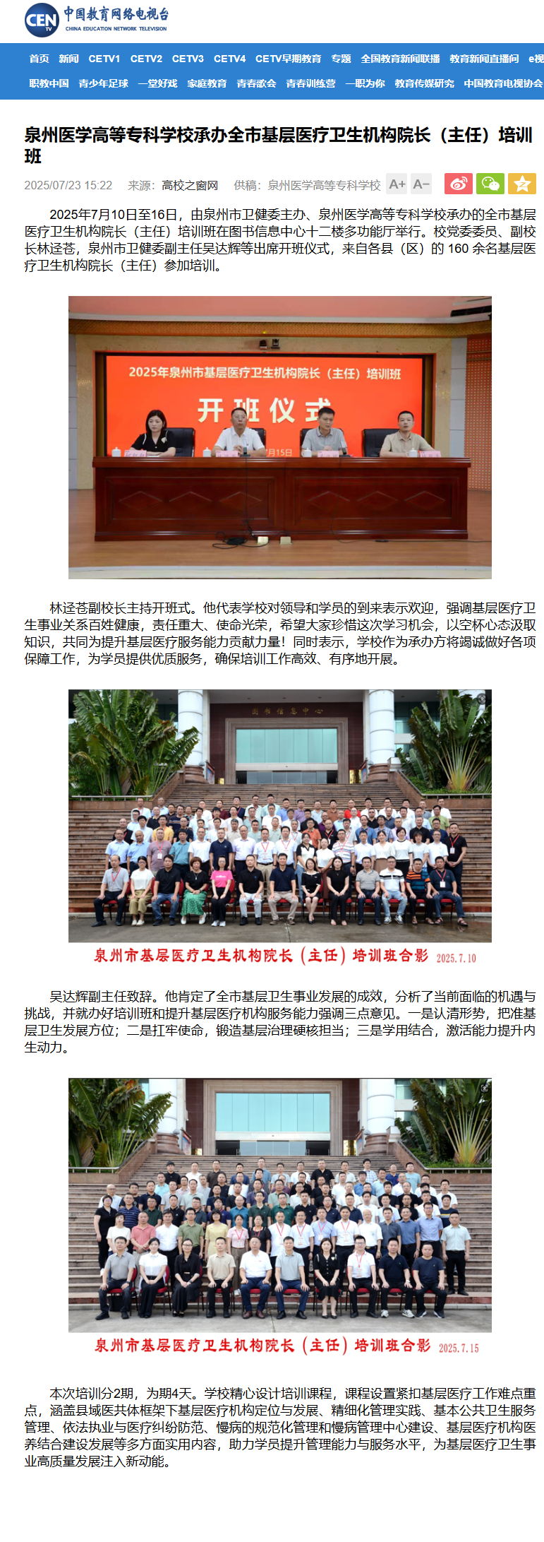 中国教育网络电视台:泉州医学高等专科学校承办全市基层医疗卫生机构院长(主任)培训班