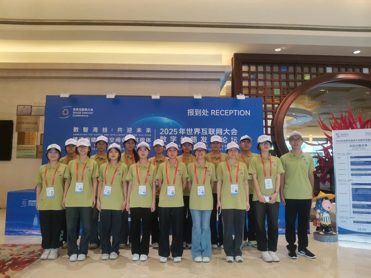 7月24日,以“数智海丝 共迎未来——携手构建网络空间命运共同体”为主题的2025年世界互联网大会数字丝路发展论坛在海上丝绸之路起点城市——泉州隆重启幕。我校35名志愿者以饱满的热情和专业的素养,迎接每一位远道而来的嘉宾,用微笑服务传递着泉州的城市温度。
