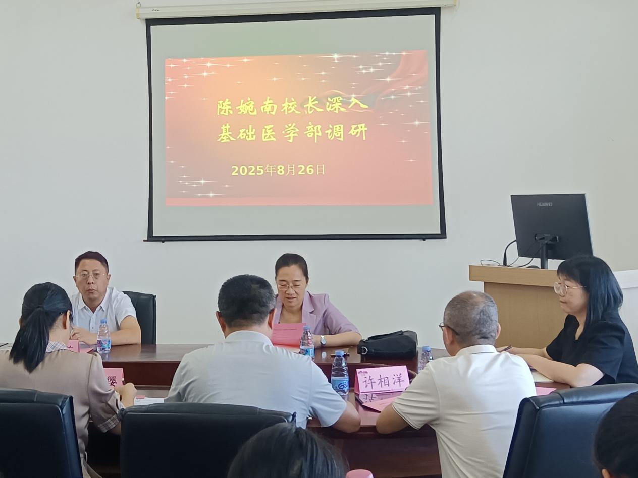 8月26日上午,陈婉南校长一行深入基础医学部调研,基础医学部党政班子及各教研室主任参加调研座谈。