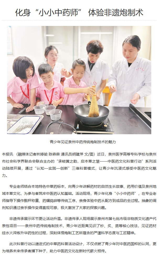 泉州网/泉州晚报:化身“小小中药师”体验非遗炮制术