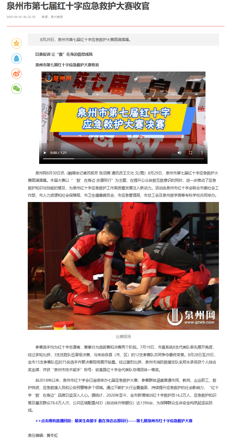 泉州网:泉州市第七届红十字应急救护大赛收官