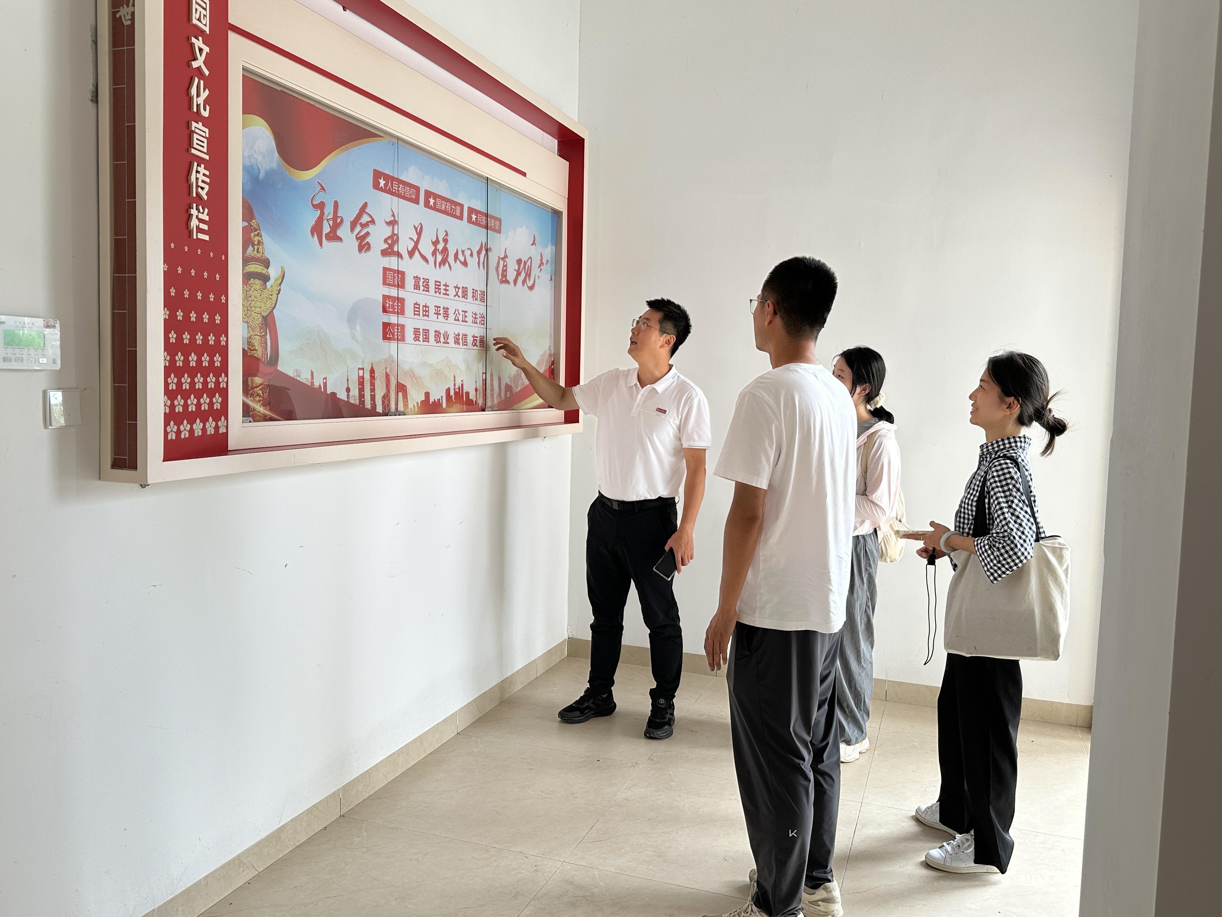 工作人员先后前往教学楼、宿舍、食堂、学生活动中心等主要公共场所,逐一查看了宣传栏、公告栏、宣传展板、文化墙的更新情况,并对各部门网站等线上宣传阵地进行了全面细致的检查,确保信息传递准确有效,视觉呈现清新明快。