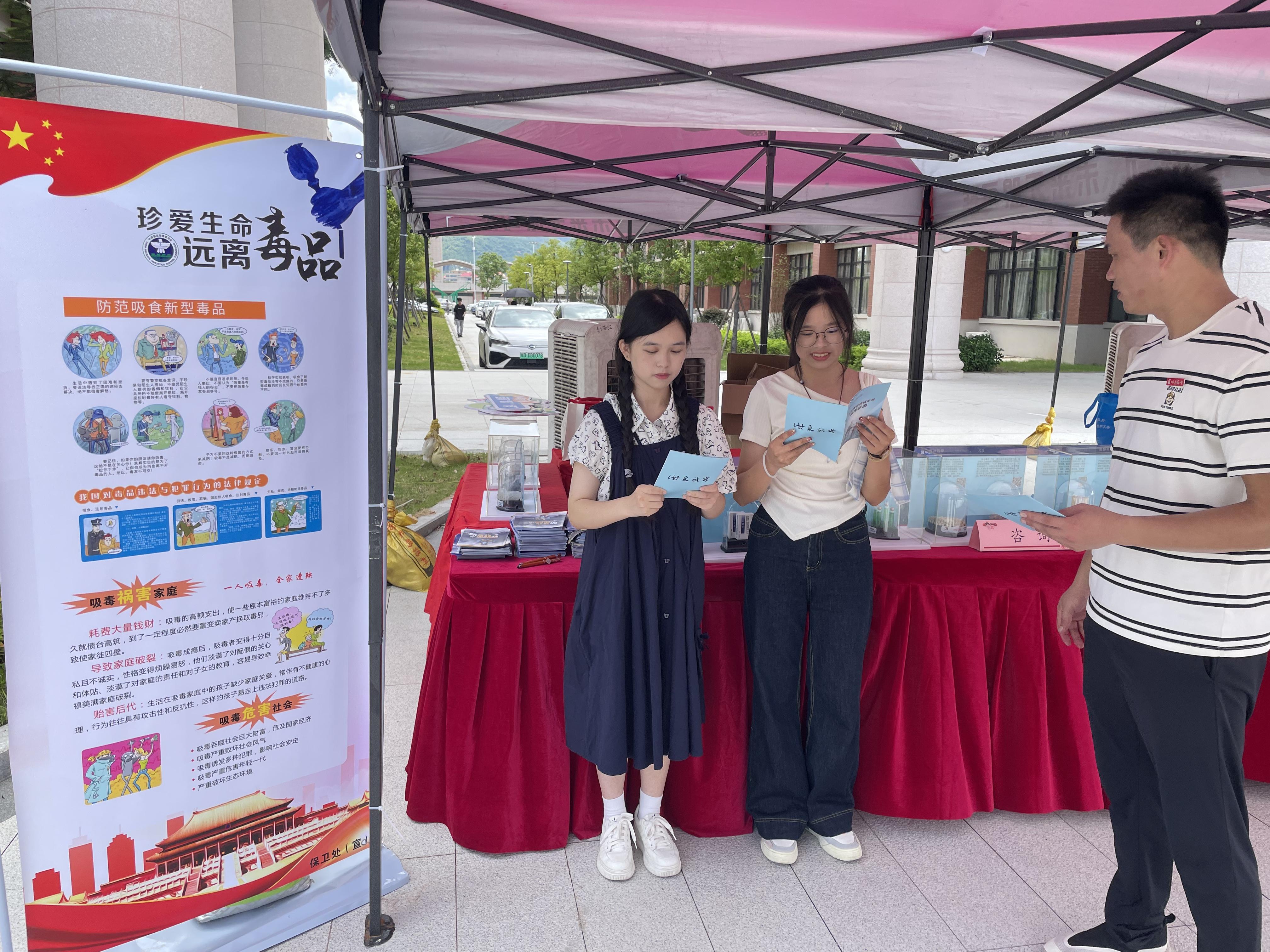 活动伊始,学校邀请了当地禁毒办工作人员和派出所民警走进校园,布置校园禁毒宣传展区,让同学可以参观学习。展区内,禁毒宣传展板图文并茂,详细介绍了禁毒法律法规、毒品识别方法及防毒技巧;工作人员现场展示了各类毒品仿真模型,直观地让新生们了解不同毒品的形态特征。在互动环节,新生们积极参与禁毒知识问答,通过趣味答题进一步巩固所学的禁毒知识,工作人员还向新生发放了禁毒宣传手册,鼓励大家将禁毒知识传递给身边的家人和朋友。
