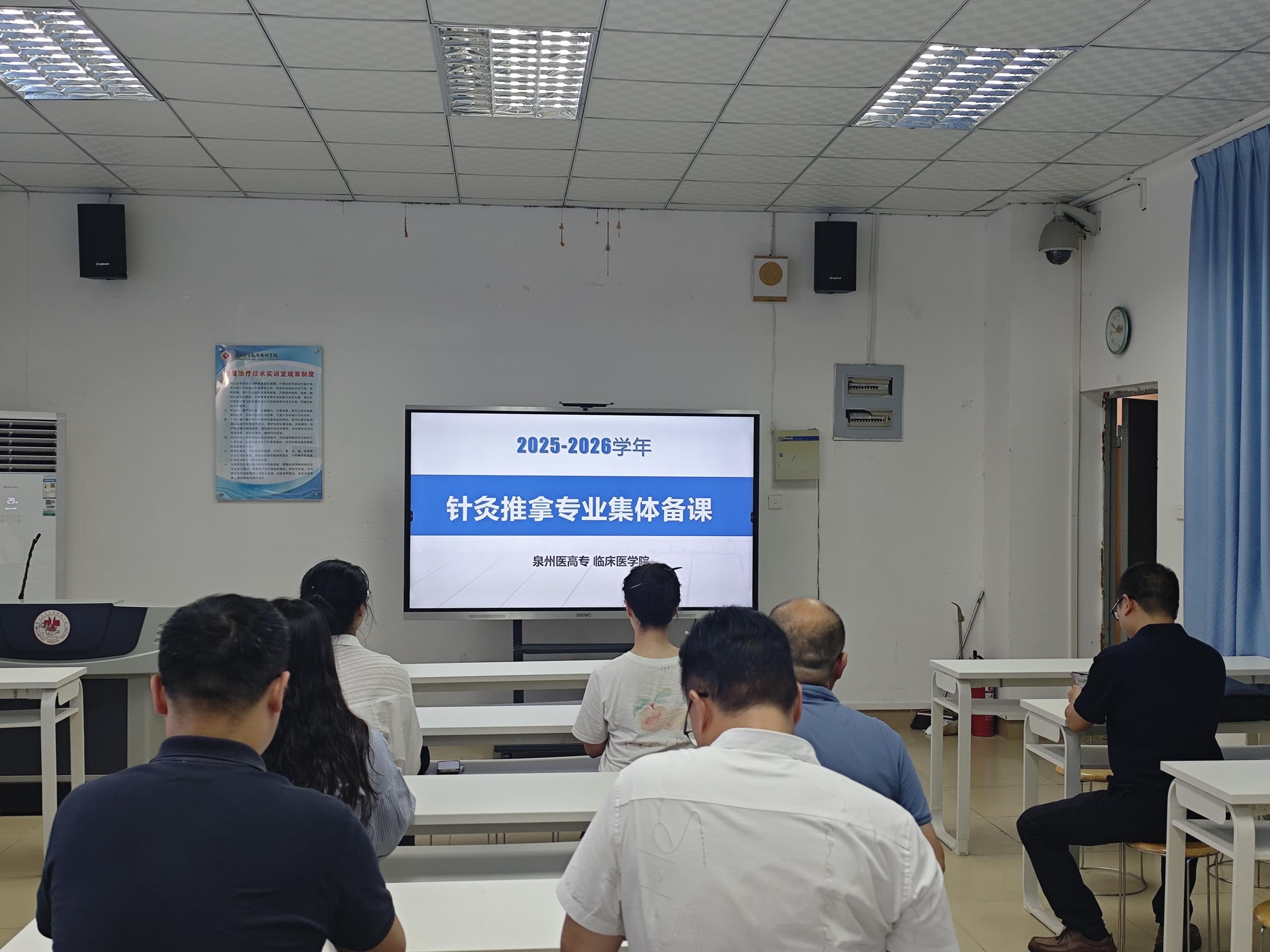 为深化医教协同,优化教学设计,共同提升人才培养质量,泉州医学高等专科学校临床医学院针灸推拿学教研室与晋江市中医院于2025年9月9日在我校联合开展针灸推拿专业集体备课。本次活动由办公室主任黄宝琼主持,针灸推拿学教研室主任林煜芬、晋江市中医院教研室秘书颜雅莹、晋江市中医院洪荣凯、张转喜、周婉迎医生以及《传染病学》、《内科学》、《外科学》、《方剂学》、《针法灸法》、《推拿治疗》课程任课老师共同参与。