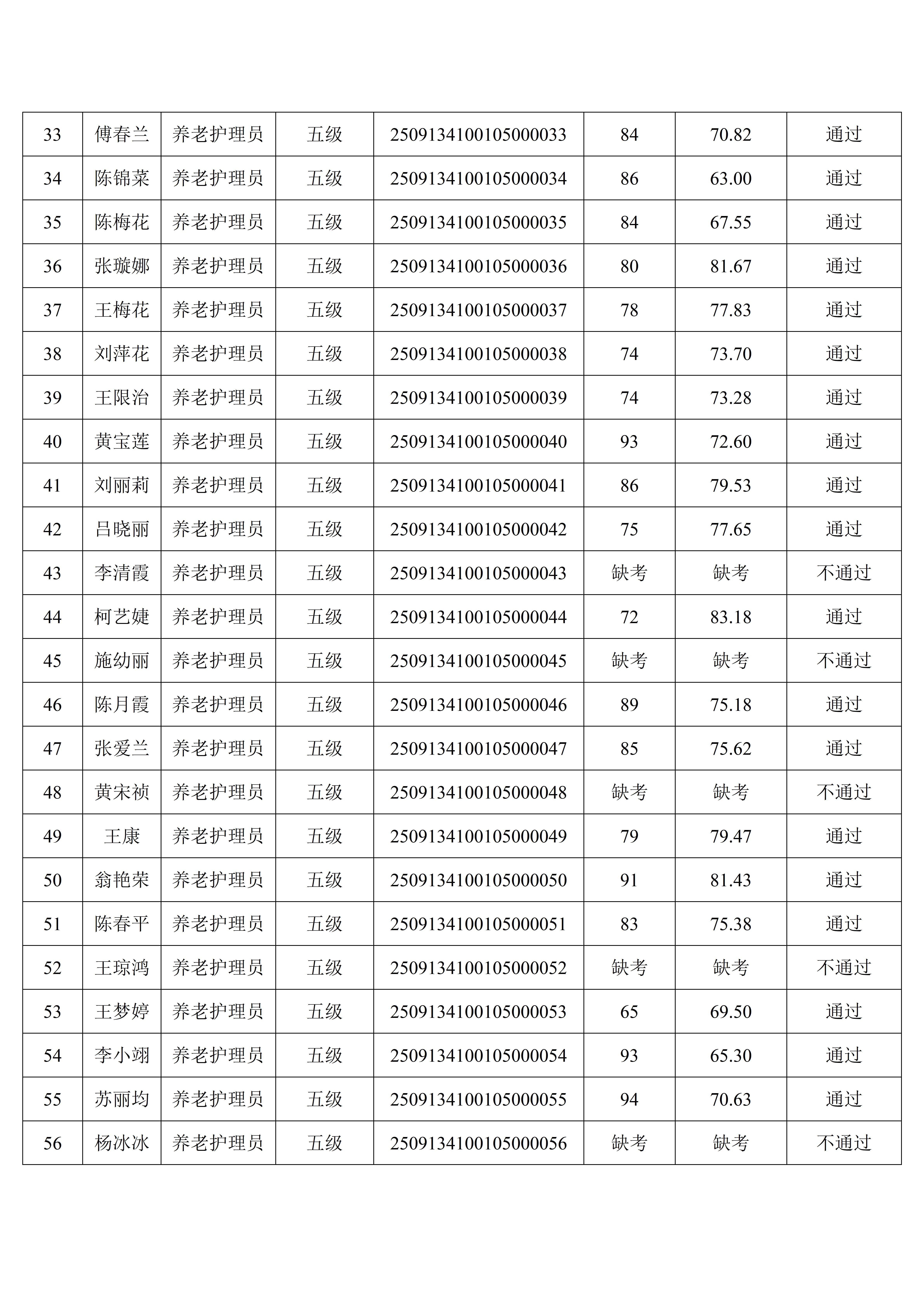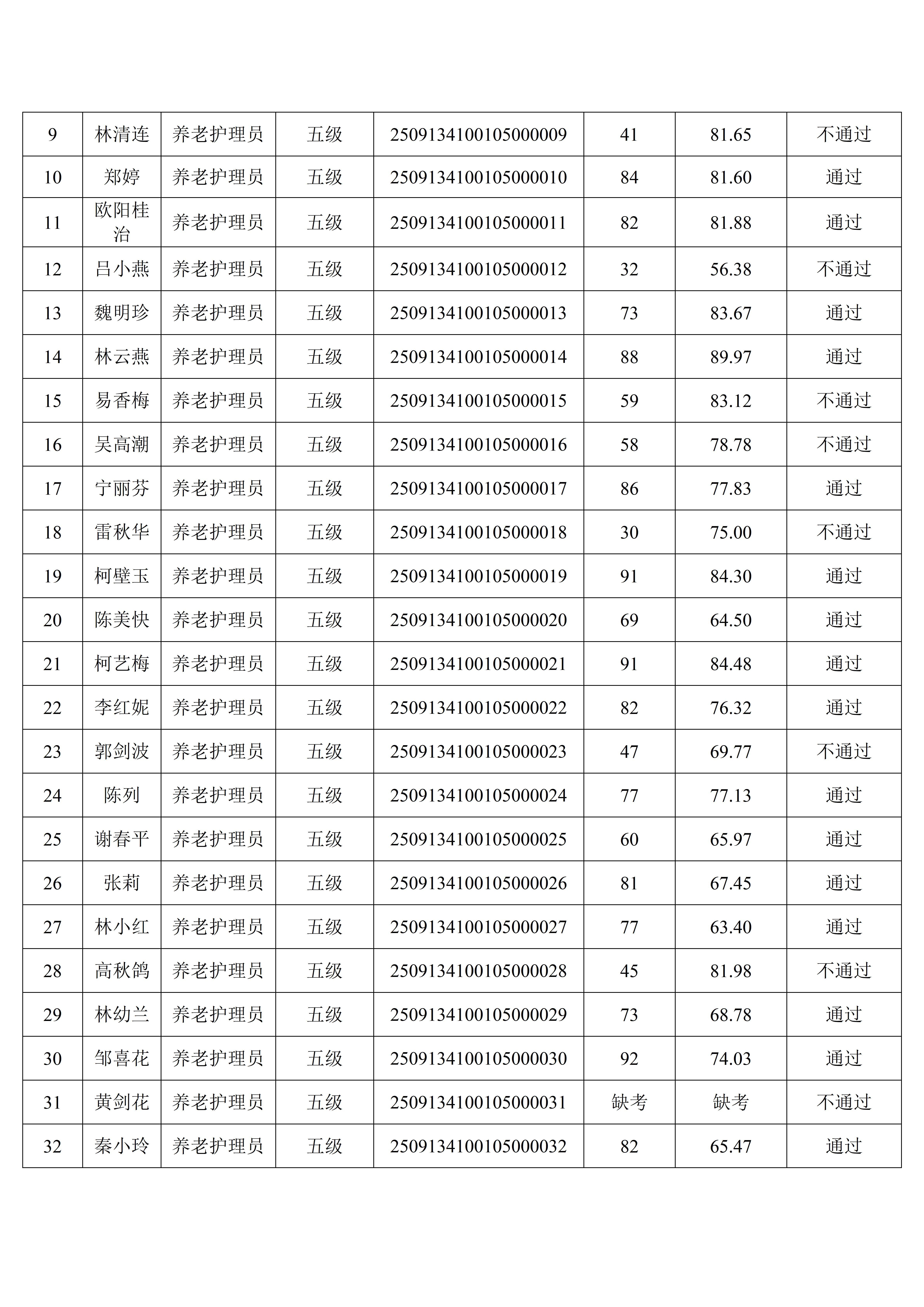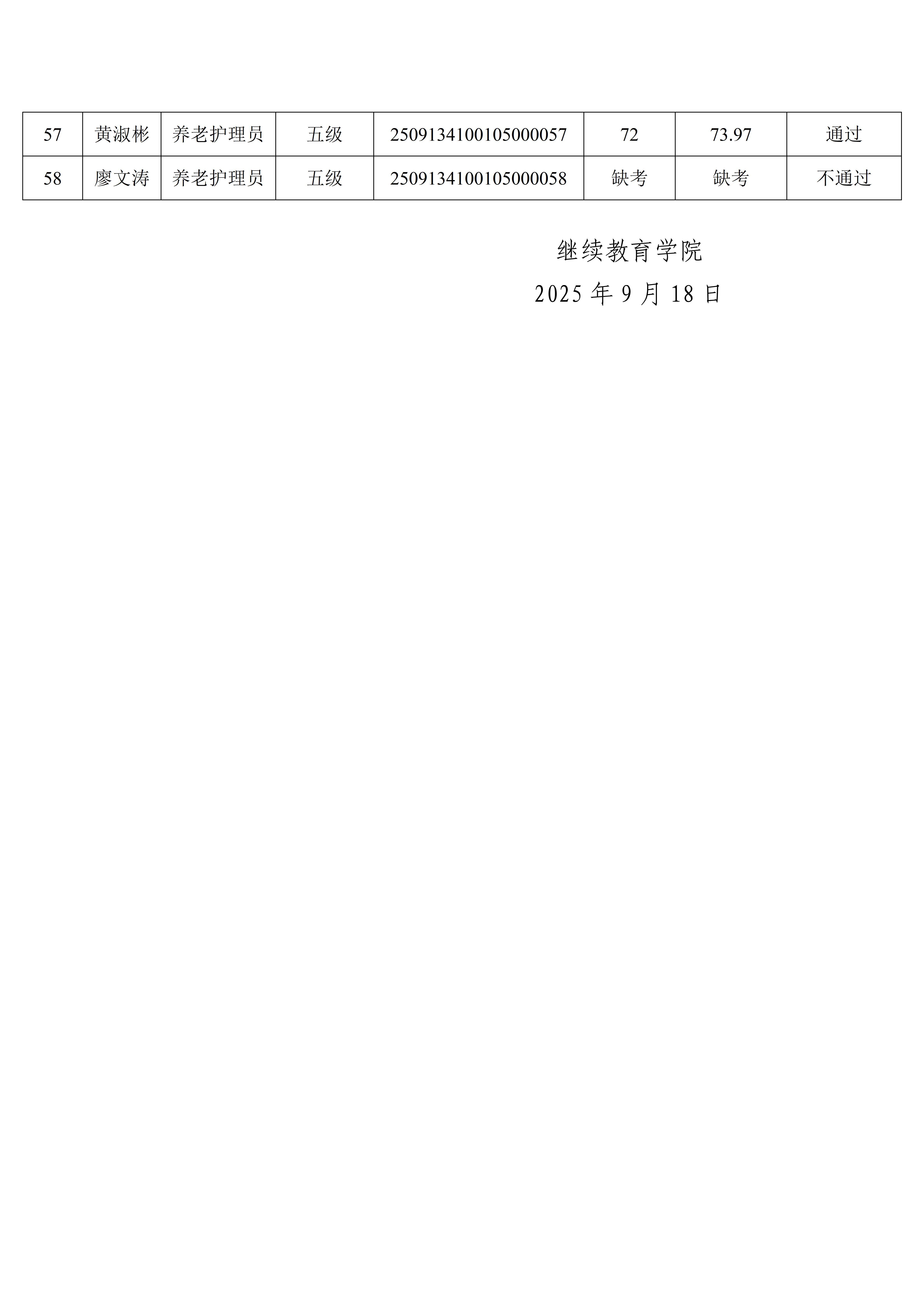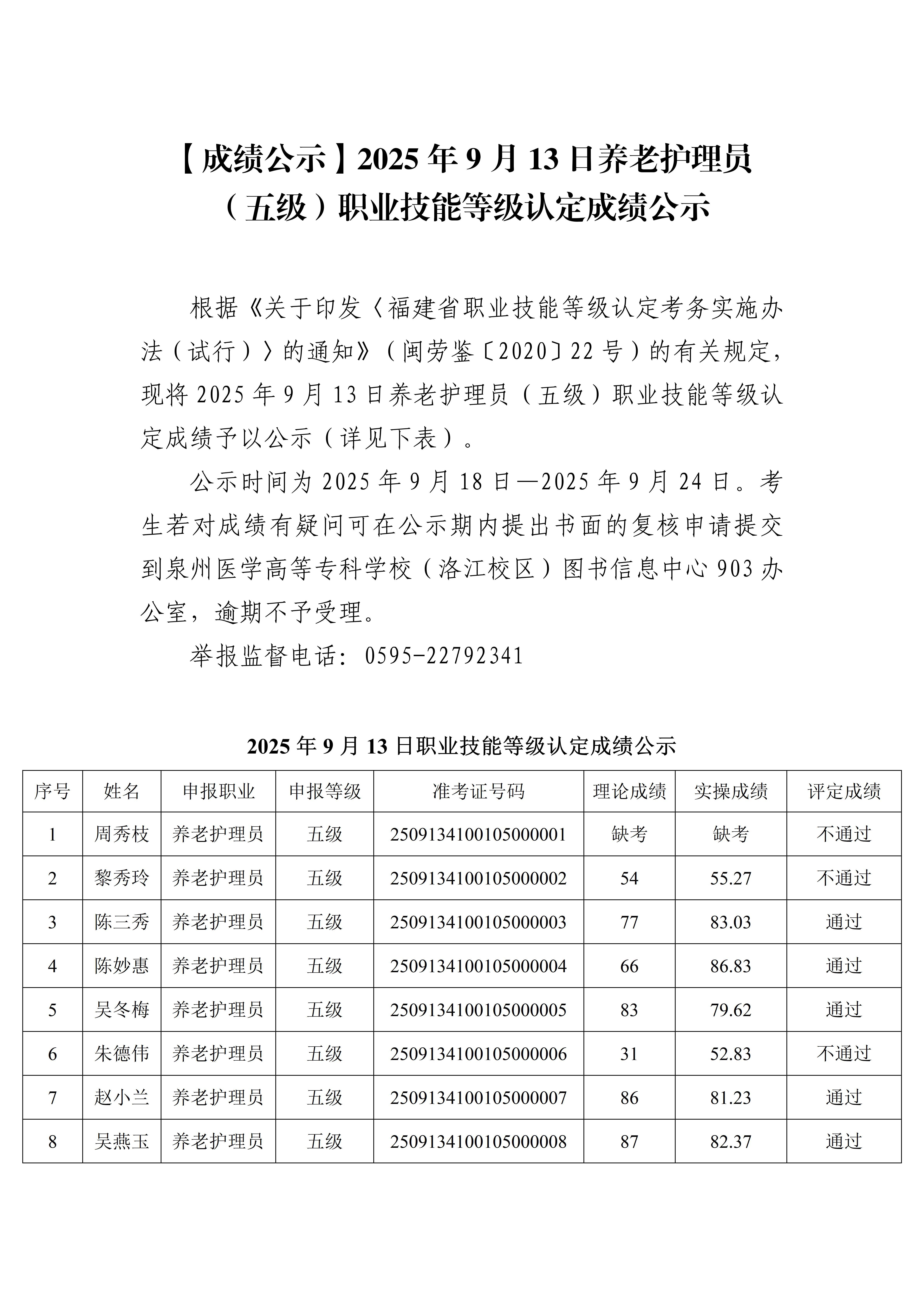 【成绩公示】2025年9月13日养老护理员(五级)职业技能等级认定成绩公示
