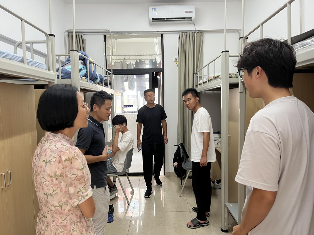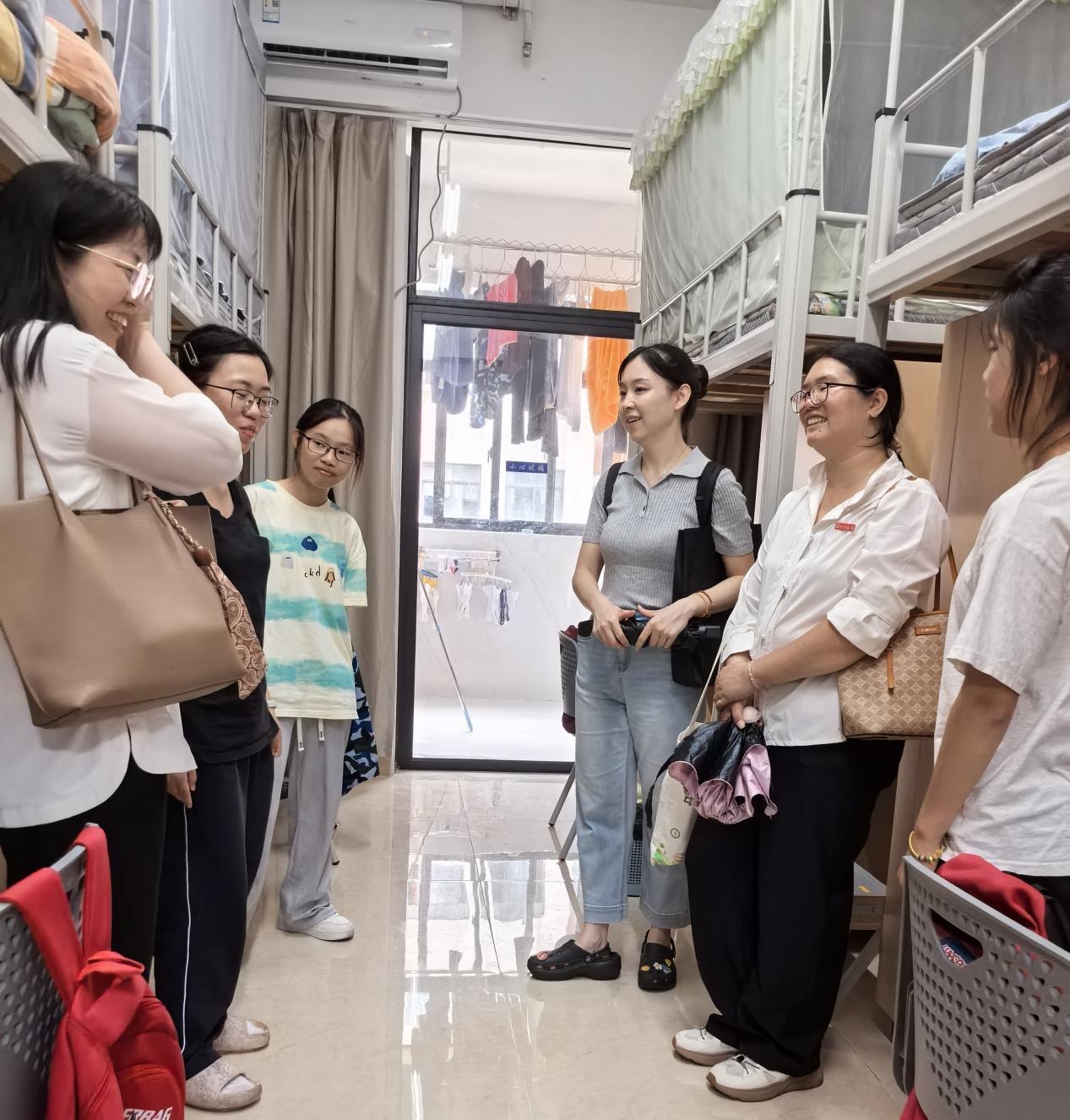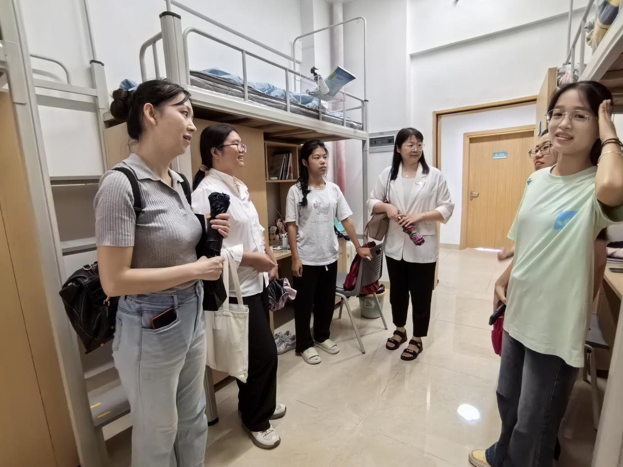 党员教师们带着关切与热情,逐一走进新生宿舍,细致询问同学们的住宿环境、饮食起居是否习惯,耐心倾听大家在生活中遇到的困难与困惑,并结合自身经验给出建议,如何合理安排作息、快速熟悉校园生活设施等。让新生们感受到如同家人般的温暖关怀,有效缓解了他们初入校园的陌生感与不适感。