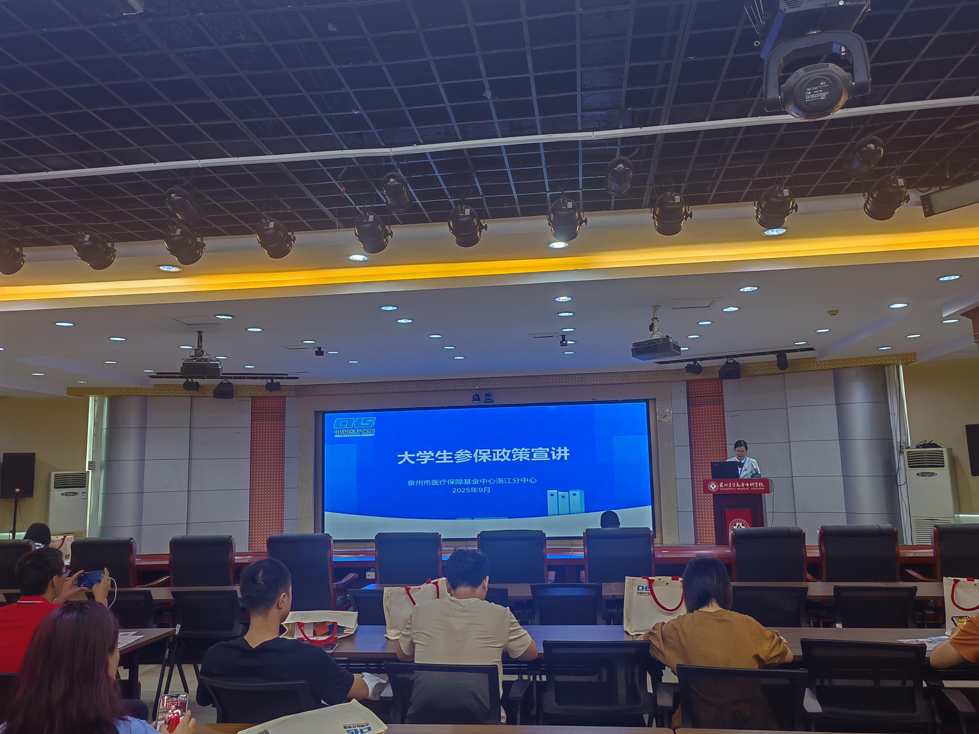 为推进2026年度大学生基本医保参保工作,9月23日下午,2026年度大学生医保政策宣讲培训会在我校洛江校区信息楼十二楼多功能厅召开。泉州市医疗保障基金中心洛江分中心负责人陈怡澄带队到校解读政策,各学院分管学生工作副院长、学生工作处人员及全体辅导员参会。