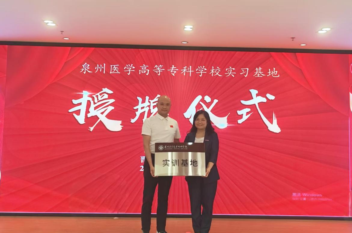 9月23日下午,泉州医学高等专科学校党委委员、副校长涂卓特,口腔医学院院长丘东海一行前往晋江市口腔医院参加实训基地授牌仪式,旨在深化校企协同育人、推动口腔医学教育与临床实践深度融合。晋江市卫生健康局副局长洪肇堆,晋江市口腔医院领导班子、相关科室负责人及泉州医高专实习学生代表参加仪式。