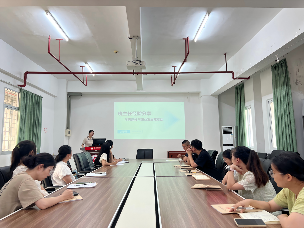 会议伊始,学生科陈海鹰老师全面总结2024-2025学年学院学生工作,梳理学生管理、学风建设、就业工作等方面成效,反馈班主任考核情况并指出问题不足。随后,班主任刘子嫣老师分享优秀工作经验,辅导员陈雷老师介绍南安校区学生工作经验,为相关工作提供借鉴与新思路。交流环节,各位班主任详细汇报班级学情及工作计划,围绕如何提升班级凝聚力、加强学风建设等方面展开讨论,共探新学期学生工作新路径、新方法。