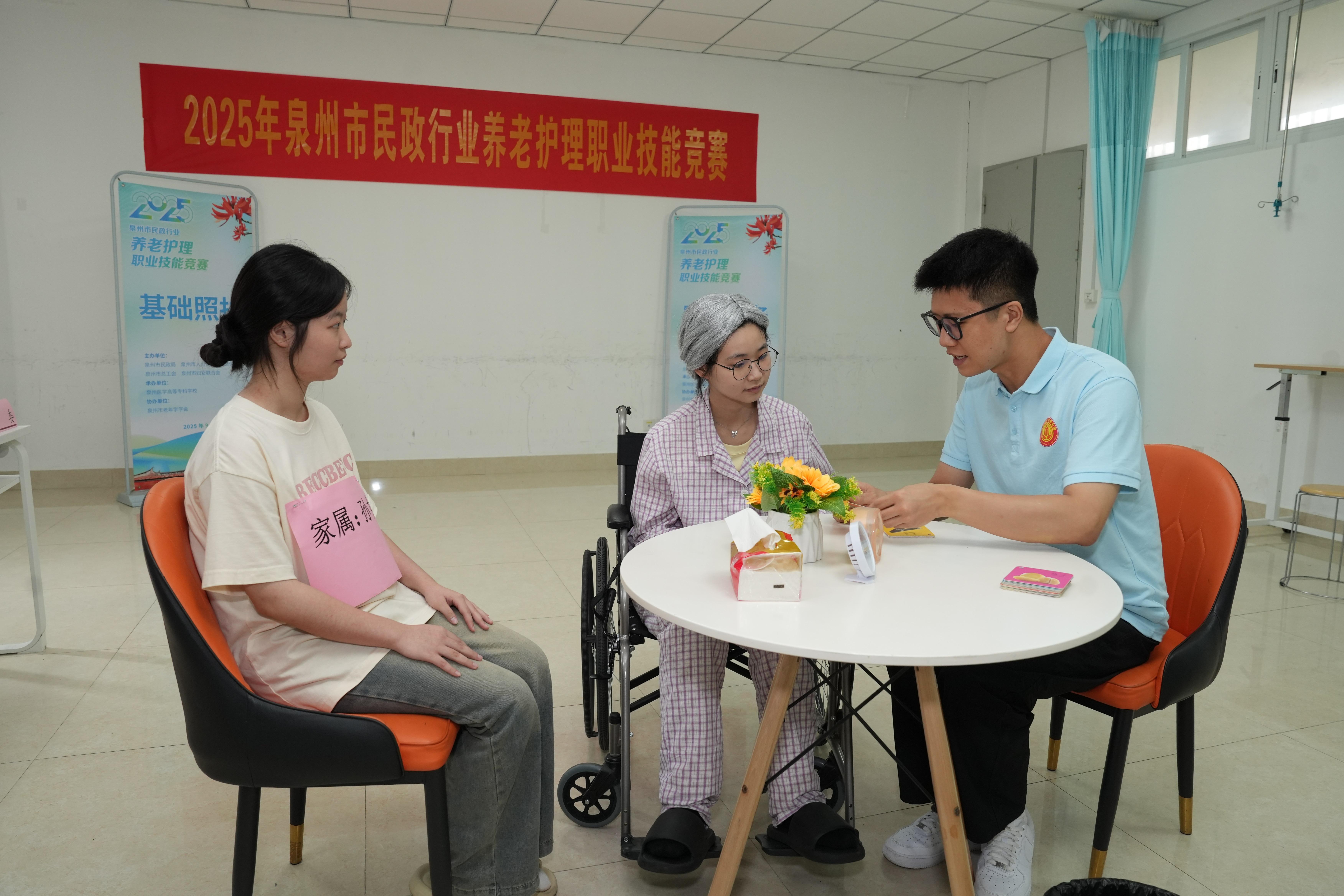 2025年9月23日至25日,由泉州市民政局、泉州市人力资源和社会保障局、泉州市总工会和泉州市妇女联合会联合主办,我校承办,泉州市老年学学会协办的2025年泉州市民政行业养老护理职业技能竞赛在校园圆满举行。全市12支代表队、48名养老护理精英齐聚我校赛场,以专业比拼传递温情,演绎了一场“专业与爱心交融”的技能盛宴。