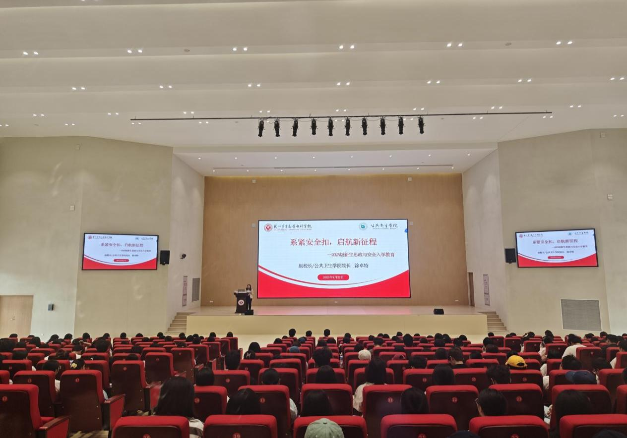9月27日上午,副校长兼公共卫生学院院长涂卓特以“系紧安全扣,启航新征程”为主题,为2025级公共卫生学院全体新生讲授了一堂融合专业使命与安全责任的思政课,紧紧围绕“立德树人”根本任务,将“三全育人”理念贯穿教育教学全过程,引导新生筑牢思想根基、守牢安全底线。