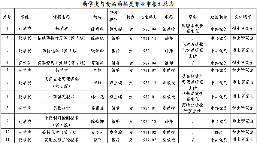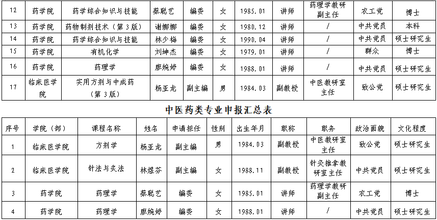 关于参加全国高等职业教育中医药类、药学类与食品药品类专业“十五五”规划教材编写人员资格审核情况的公示