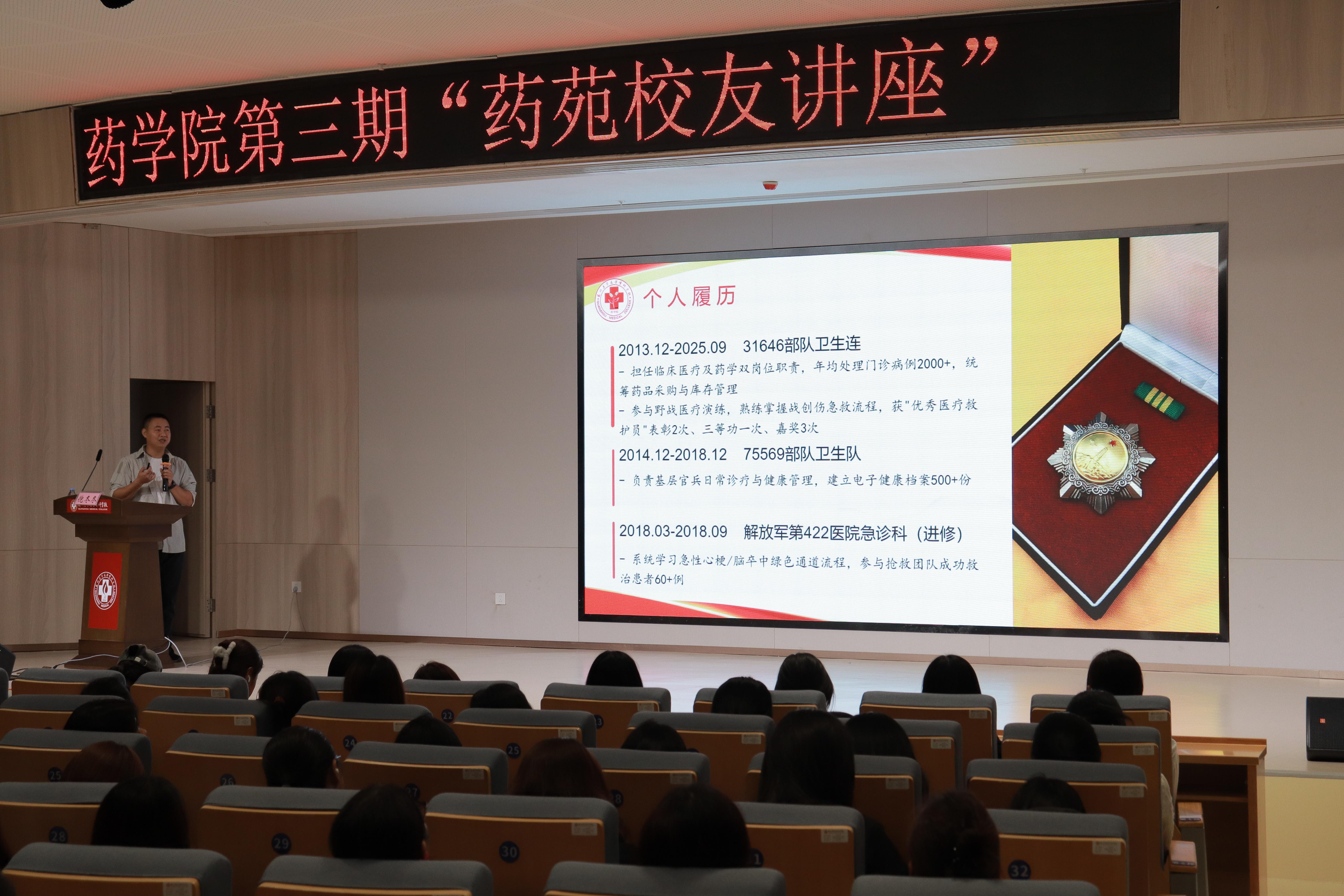 在“立志·明确的方向”部分,倪冬冬学长系统梳理了个人成长轨迹。大三实习期间他选择入伍,开启军旅生涯。服役期间,他先后在陆军军医大学士官学校、中国医科大学深造,并考取主管药师、执业药师和临床执业医师等多项资质。在基层部队卫生连队,他担任临床医疗与药学双岗位工作,年均处理门诊病例2000余例,多次荣获表彰。通过在解放军第422医院急诊科进修,他系统学习急性心肌梗死/脑卒中绿色通道流程,参与抢救团队成功救治患者60余人,以实际行动诠释了“精诚惠世”的校训精神。