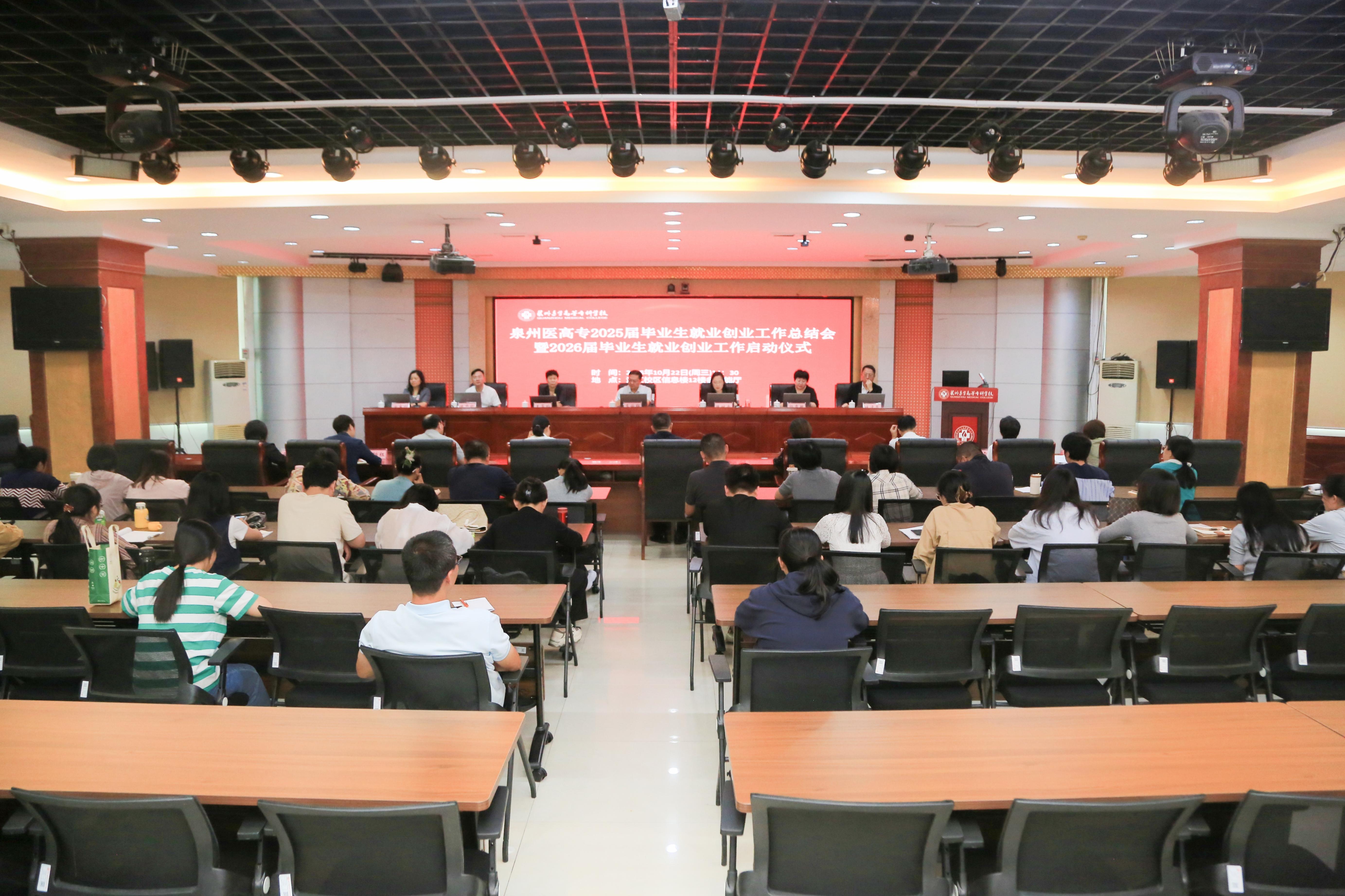 10月22日下午,泉州医学高等专科学校于洛江校区举行2025届毕业生就业创业工作总结暨2026届毕业生就业创业工作启动会。全体校领导,各学院书记、院长、分管副院长,招生就业处全体人员,全体辅导员参加会议。本次会议由涂卓特副校长主持。