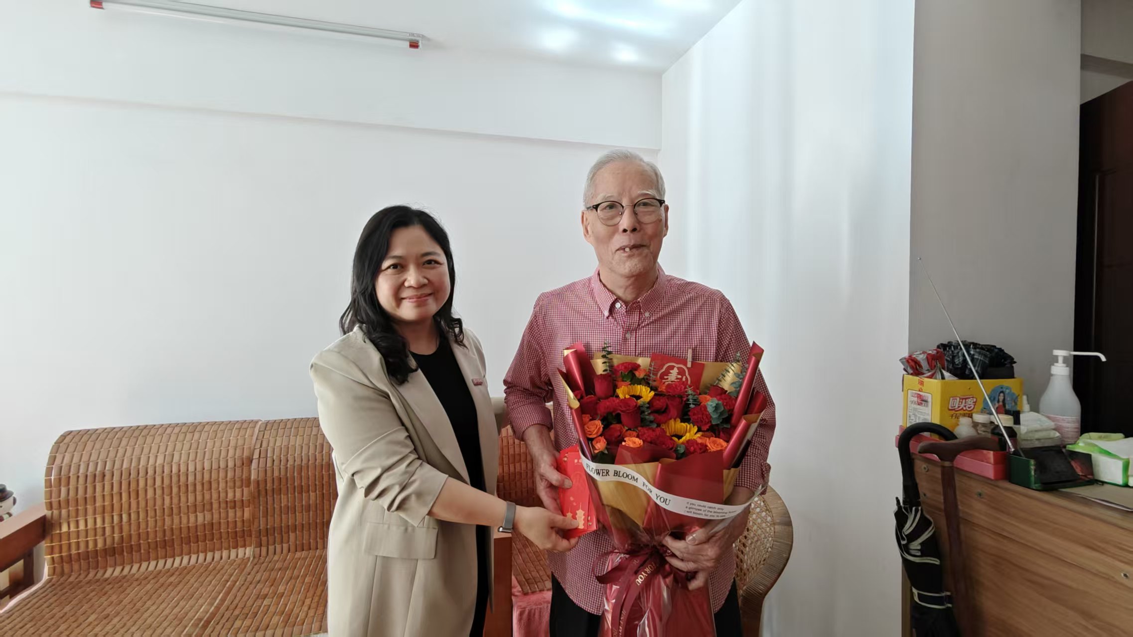10月29日上午,学校副校长涂卓特带队走访慰问年满90岁的杨栋梁、邓应谦两位老同志,在老同志家中,与他们畅谈近况、追忆校史,并诚恳听取了他们对学校改革发展的意见与建议,感谢其为学校发展作出的贡献,送上鲜花、蛋糕券与慰问金。10月24日和10月28日,学校退休离休教育工作者协会及人事处工作人员也走访慰问了80岁的张丽雪老同志及70岁的郑民江、黄馥馨、曾大汾三位老同志。老同志们对学校的关怀表达了衷心感谢,纷纷表示将继续关注学校的发展,为学校的进步贡献自己的余热。