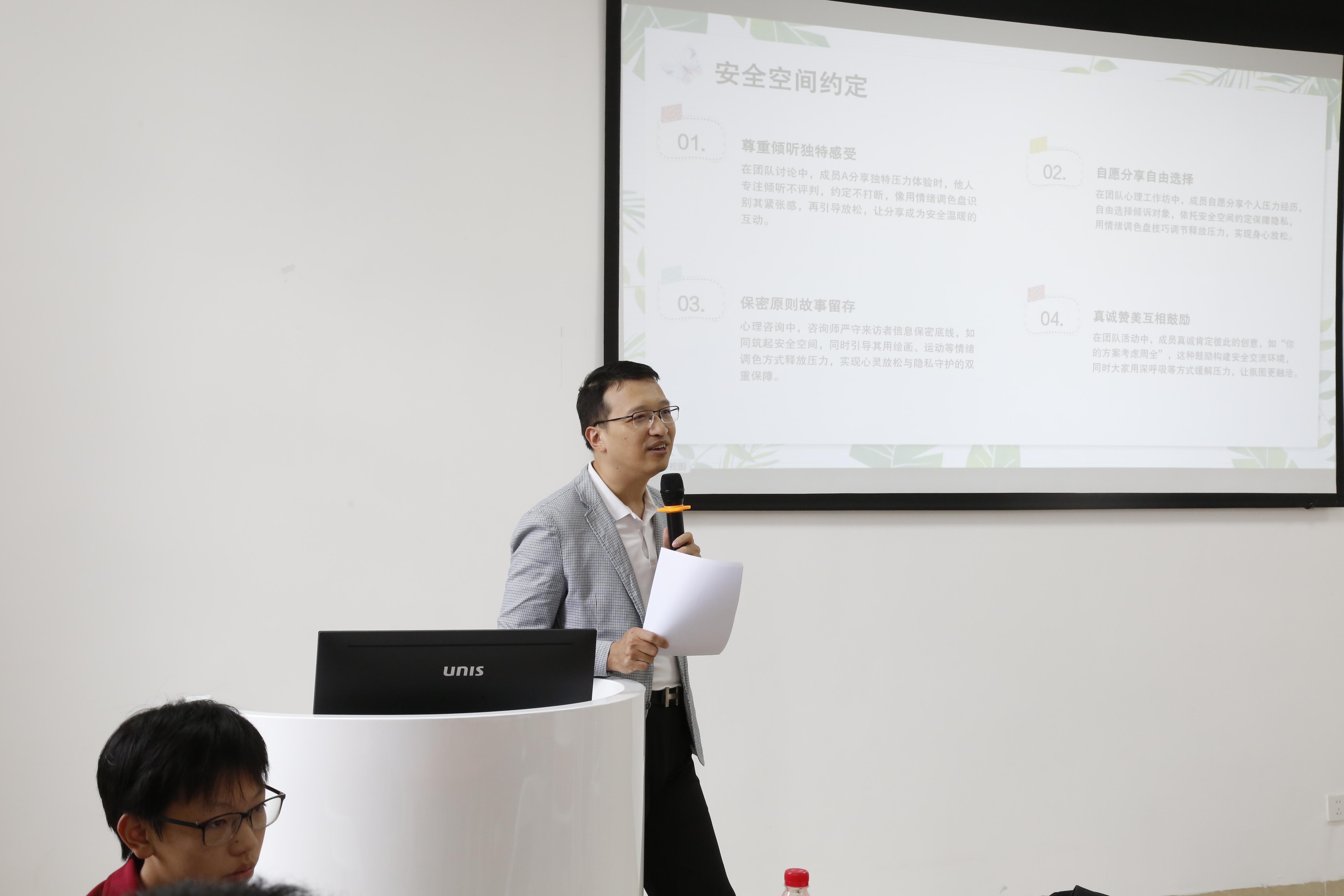 活动以“情绪调色”为核心创意,由陈元堂副教授担任主训,通过破冰启航、探索压力、调配平衡三大环节展开。破冰启航环节以分组互动的方式以趣味互动建立跨学段联结;探索压力环节通过围绕压力的双面性、适度压力助成长、情绪行为压力信号、不同压力信号表现形式等话题展开探讨,以多元形式识别情绪;调配平衡环节通过分析大中小学生的压力现状,分享实用的情绪调节方法,引导学生找到属于自身的情绪“底色”。通过系列互动让学生们意识到,缓解压力并非要消除压力,而是通过科学方法与压力和平共处、积极应对压力问题。