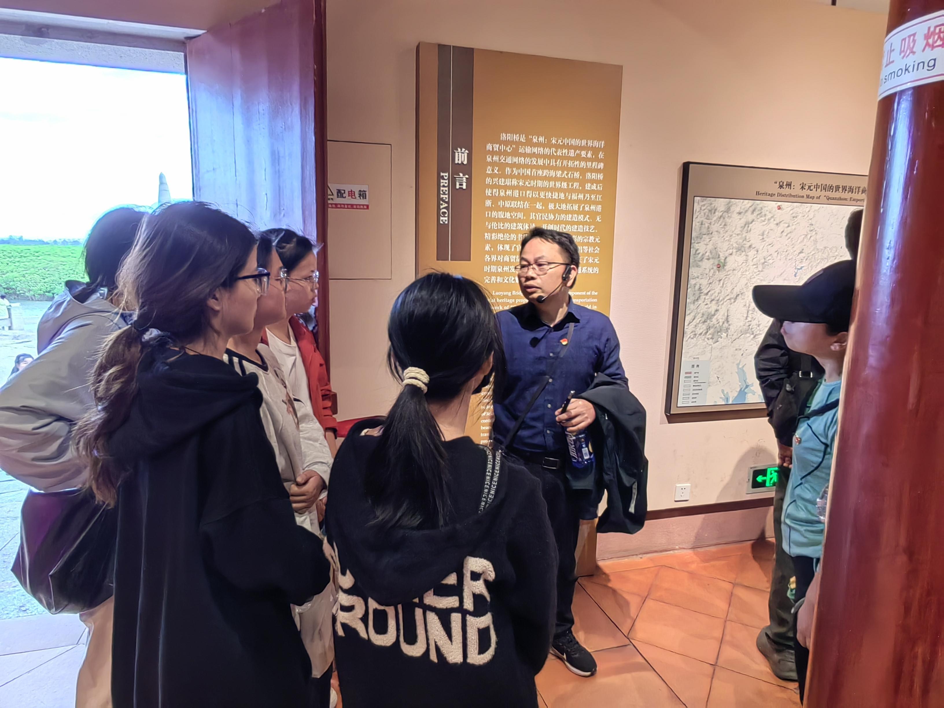 抵达被誉为“海内第一桥”的洛阳桥后,团员青年们在讲解员的引导下,沉浸于这座千年古桥的历史长河之中。大家仔细聆听了洛阳桥的建造背景、巧妙结构以及历经风雨依然坚固的传奇故事。讲解员生动讲述了古代劳动人民如何运用“筏形基础”、“种蛎固基”等卓越智慧,克服当时的技术难题,最终成就这一伟大工程的壮举。凝视着斑驳却雄健的桥体与桥下奔流不息的海水,青年们无不为古代工匠们的创新精神和非凡智慧所震撼,深刻感受到了中华优秀传统文化的博大精深与独特魅力。这份跨越时空的对话,极大地增强了大家的民族自豪感和文化自信心。