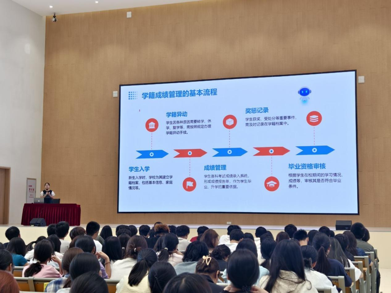 药学院教务科庄月娥老师以“2025级新生学籍管理”为主题,开展了一场细致入微的专题讲座,为同学们在学业旅程中构建起坚实的后盾。她强调,学籍管理不仅是记录学生学习经历的档案系统,更是保障学生权益、规范教学秩序的重要环节。同学们需深刻理解学籍管理制度的重要性,明确学籍注册、课程选修、成绩管理、学籍异动等关键环节的操作流程与注意事项,认真对待每一次课程选择,合理规划学业路径,确保学分的积累与毕业要求的契合。同时,她提醒同学们要密切关注学籍异动信息,如休学、复学、转专业等,及时办理相关手续,避免对学业造成不必要的影响,为未来的升学、就业奠定坚实的学业基础。