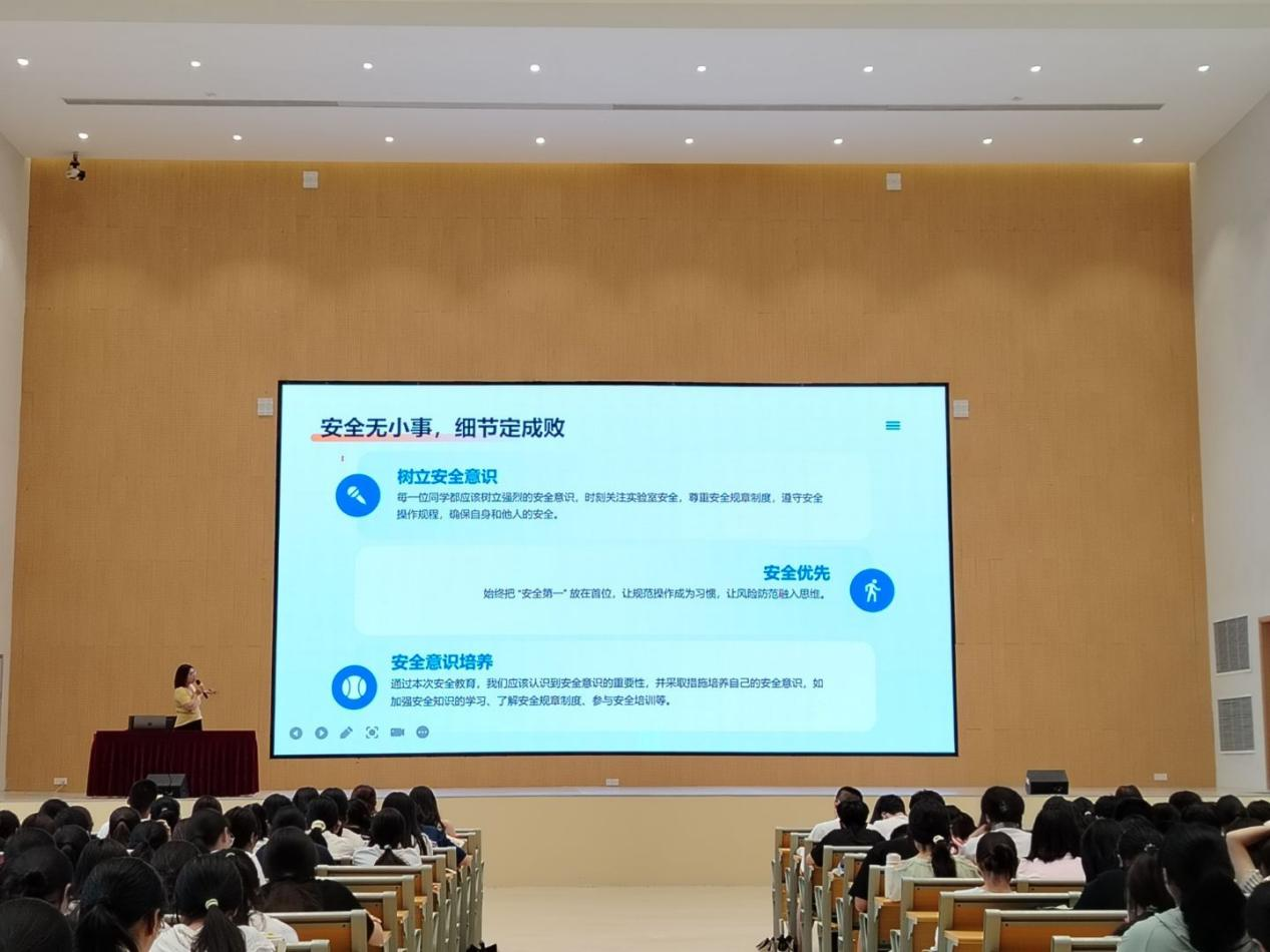 为切实筑牢校园安全防线,提升新生实验室安全意识与应急能力,药学院组织开展2025级新生实验室安全主题教育系列活动。本次活动由教务科科长周亚明老师主讲,实验实训教研室全体教师共同参与,围绕“安全第一、预防为主”的主题,为全体新生带来一堂严肃而深刻的安全教育课。 宣讲环节中,周亚明老师系统讲解了实验室基本安全规范、危险化学品管理、个人防护要点及应急处置流程等内容,结合近年来高校典型安全事故案例,深入剖析了违规操作可能造成的严重后果。现场还播放了实验室安全警示教育片,以真实画面和沉痛教训,进一步强化了学生的安全认知与责任意识。周老师强调,安全是开展一切实验工作的前提,并倡议全体师生共同行动起来,从细节做起,共建安全、有序、高效的实验环境。讲座结束后,实验实训教研室全体教师分组带领新生进入教学实验室,开展现场教学。老师们结合实际场地与设备,详细讲解了消防设施位置、紧急冲淋装置使用方法、实验流程中的风险点及防范措施,帮助同学们在真实场景中巩固安全知识、树立规范意识。