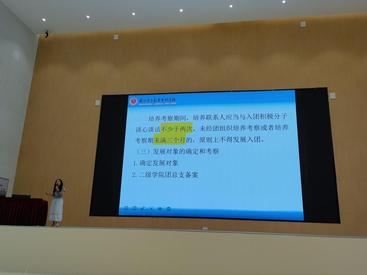 团总支黄佳莹老师以“团学知识介绍”为主题,开展了一场别开生面的团学知识讲座。她详细阐释团徽内涵,让新生了解共青团在党的指引下团结青年奋勇前进。在团员发展方面,明确入团标准与流程,强调入团动机要端正,积极参加团课学习与志愿服务。同时,她介绍了团总支各部门职能,各部门协同为青年成长助力。此外,黄老师着重指出第二课堂的重要性,详细解读第二课堂相关文件实施方案。此次讲座使2025级新生对团组织有了全面认识,激发了他们加入团组织的强烈愿望,助力新生在团组织引领下,明确方向,努力成长为有理想、敢担当、能吃苦、肯奋斗的新时代好青年。