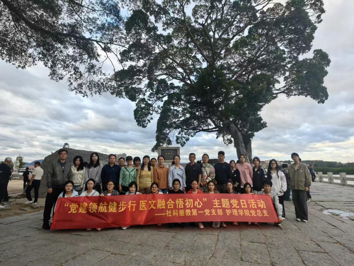 11月13日下午,社科继教第一党支部与护理学院党总支联合主办的“党建领航健步行 医文融合悟初心”主题联建活动顺利开展。院部领导、党员代表及学生代表齐聚,在运动中强党性、在人文中增自信。
