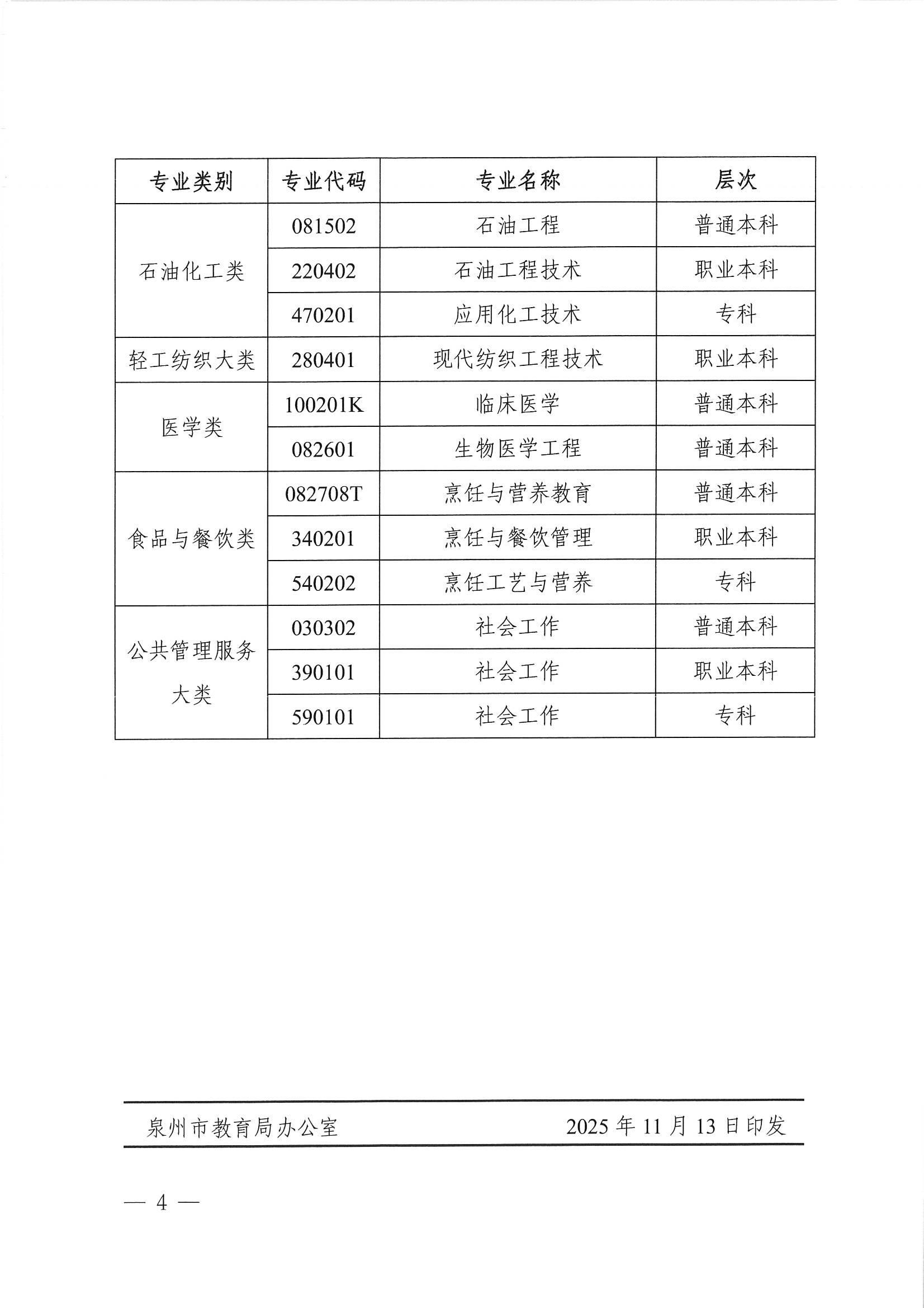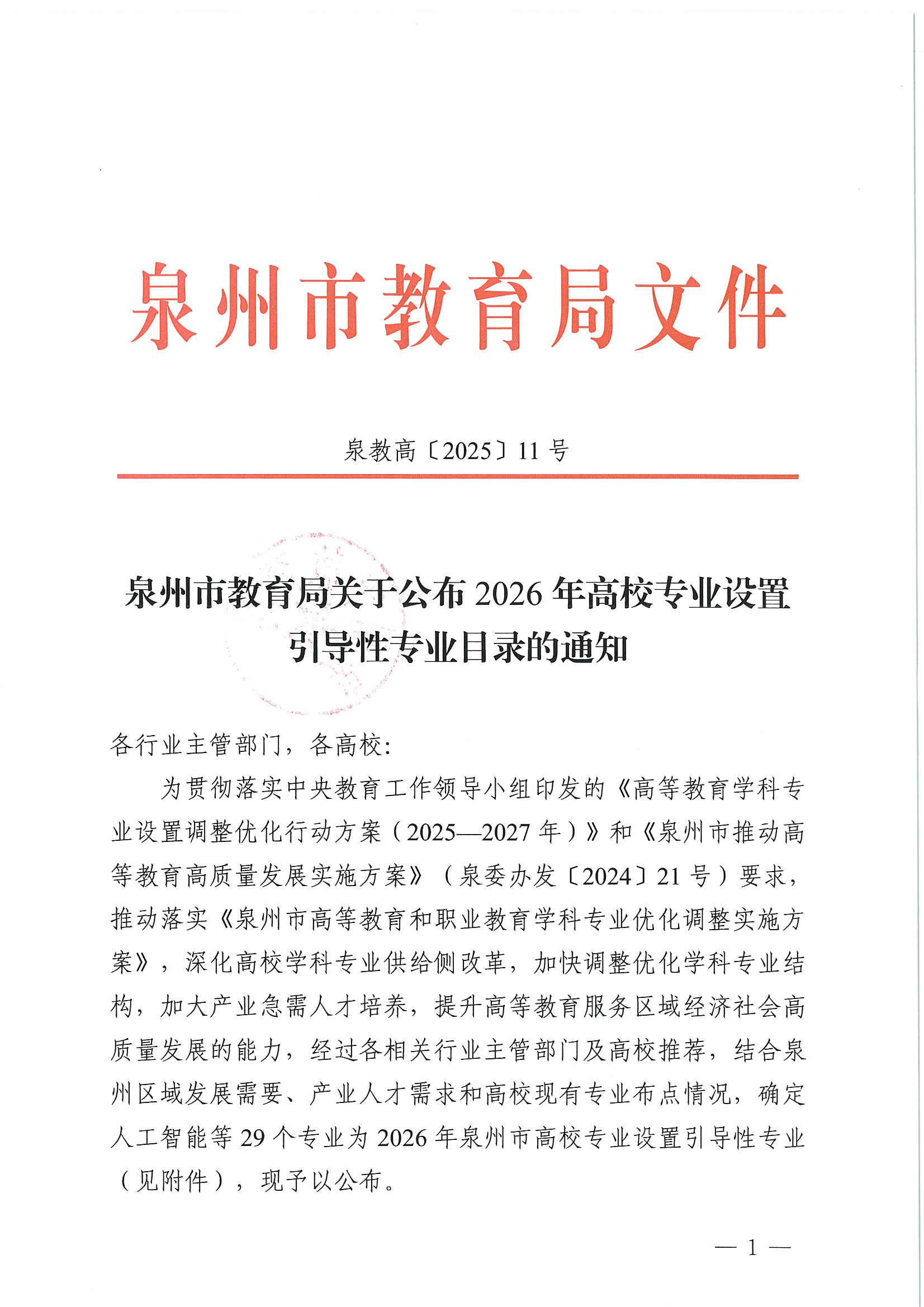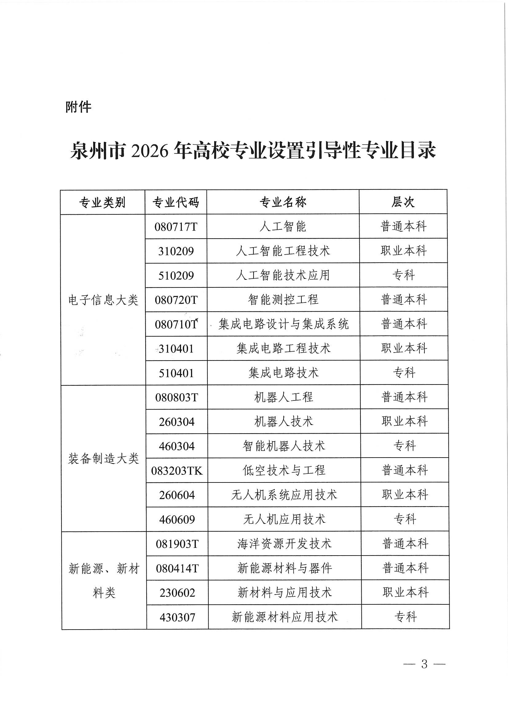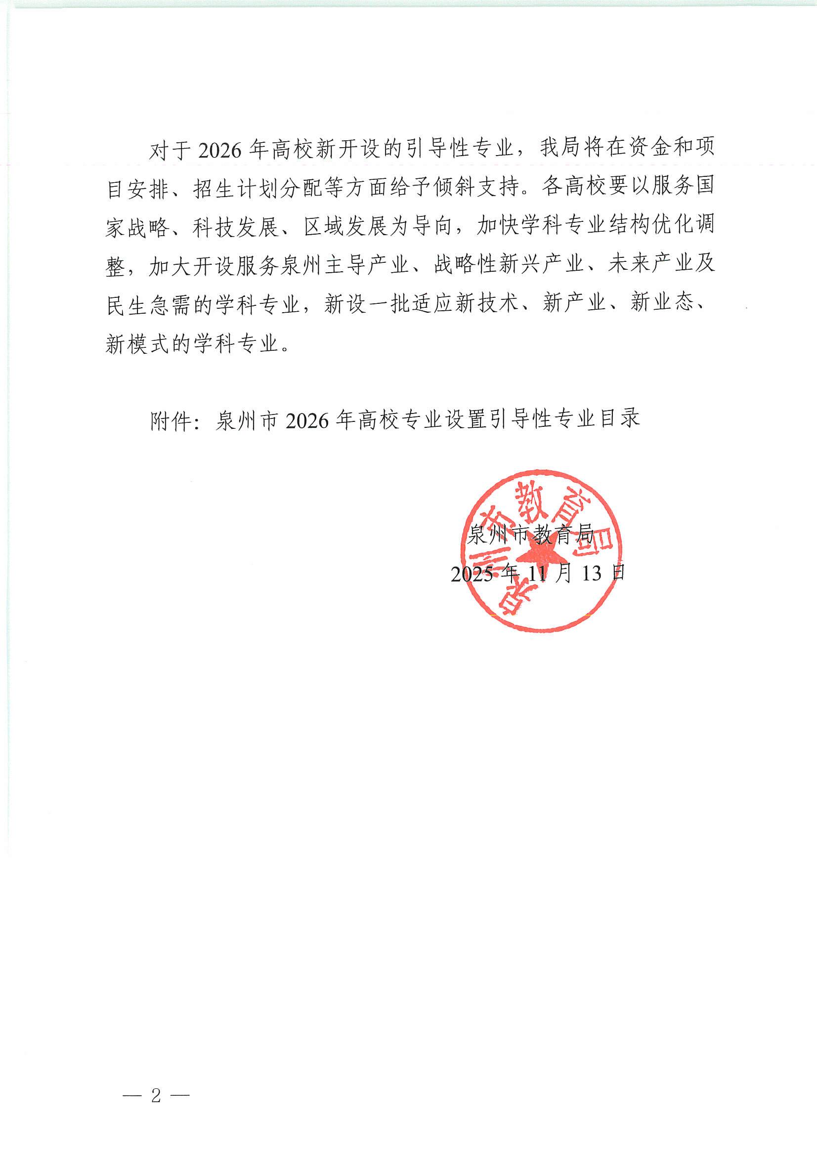 泉州市教育局关于公布2026年高校专业设置引导性专业目录的通知
