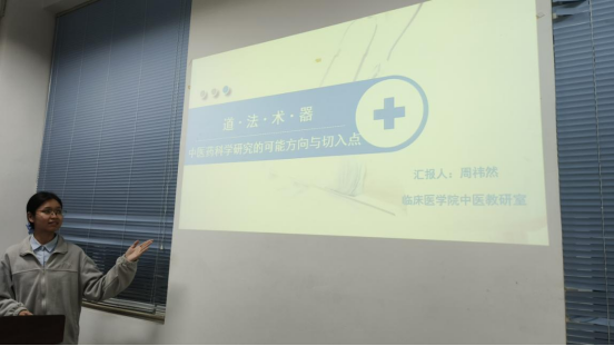 11月20日,临床医学院成功举办“道、法、术、器——中医药科学研究的可能方向与切入点”专题学术讲座,本讲座由周祎然博士为全院教师主讲。
