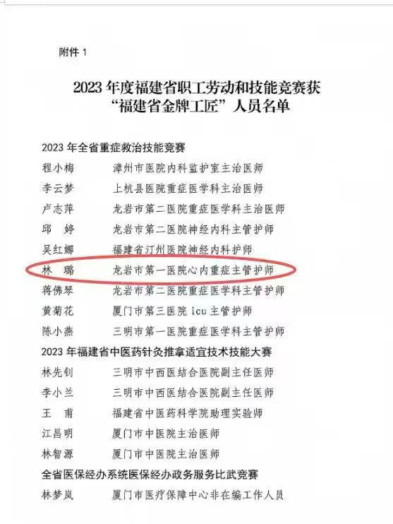 毕业后,林璐入职龙岩市第一医院心内科,始终以 “精益求精” 的态度打磨护理技能。她苦练急救本领,2018 年一路过关斩将,拿下龙岩市、福建省急救技能竞赛 “心肺复苏 + AED” 一等奖,更斩获全国急救技能竞赛二等奖;2023 年又在福建省重症救治技能大赛中收获理论、操作双单项奖及个人优胜二等奖。2020 年武汉疫情期间,她主动请缨加入福建省第九批援鄂医疗队,在武汉光谷方舱医院坚守 42 天,获评 “龙岩市最美抗疫逆行者”“龙岩市三八红旗手”。