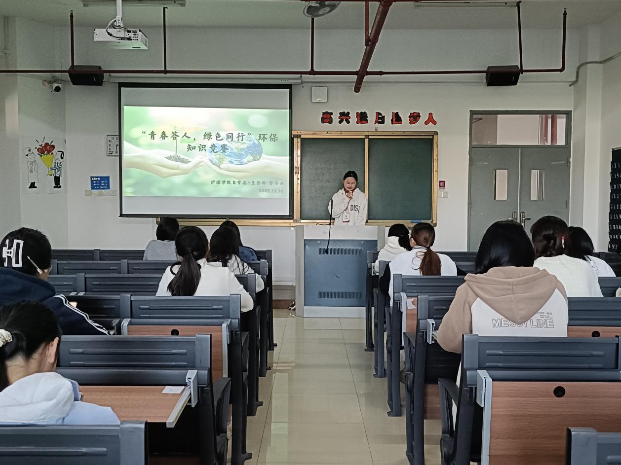 在全球环境问题日益凸显的背景下,为激发大学生环保热情、普及绿色知识,泉州医学高等专科学校护理学院自管委于2025年12月10日在洛江校区基础实验楼201教室举办“青春答人,绿色同行”环保知识竞答赛。活动依托学习通平台,采用现场抢答形式,以赛促学、以学促行,推动环保理念扎根校园,引导学生将环保意识转化为日常实际行动。