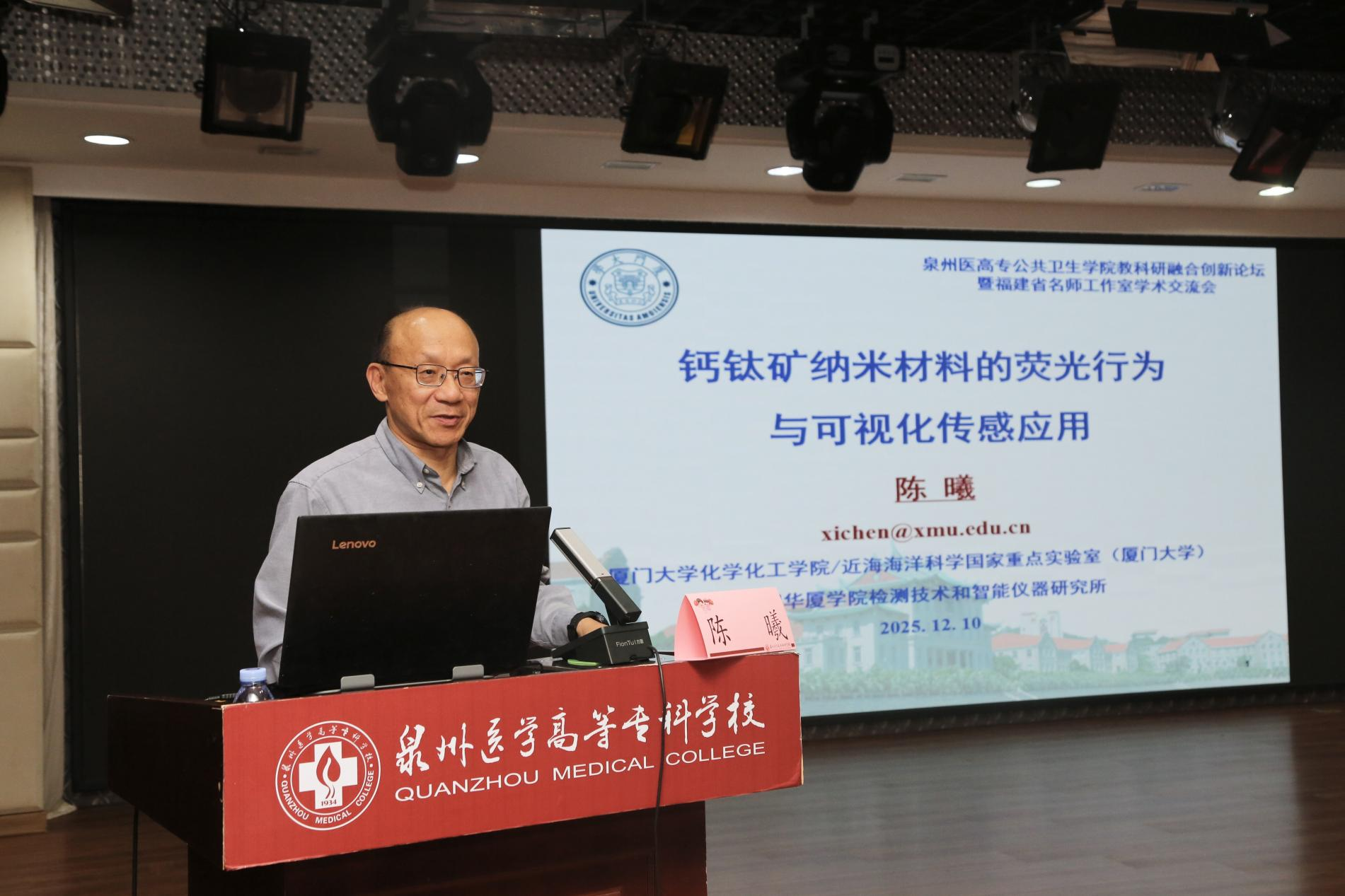 2025年12月10日下午,公共卫生学院教科研融合创新论坛暨福建省名师工作室学术交流会在泉州医学高等专科学校洛江校区图书信息中心8楼报告厅举办。本次论坛旨在推动教学、科研与创新的深度融合,特邀厦门大学化学化工学院陈曦教授、集美大学海洋食品与生物工程学院陈晓梅教授、厦门大学计算机科学与技术系林子雨副教授等3位专家,围绕前沿科研、技术应用与教学创新展开深度分享。泉州医高专校党委副书记王翠玲、副校长涂卓特、公共卫生学院师生代表共同参与本次学术交流会。公共卫生学院教授陈海玲主持本次交流会。