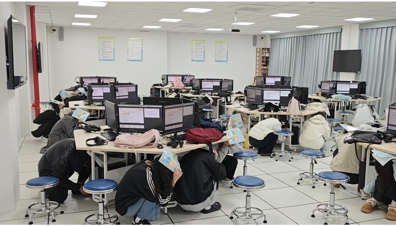 为进一步普及防震减灾知识,提升师生应急避险与自救互救能力,12月10日上午,由社科公共部智慧语音室实验员施密娜老师和外语教研组陈群老师带领组织了2025级老年保健2班全体学生共同开展了一次实验室地震应急演练。
