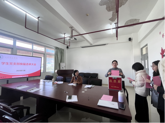 为进一步加强基层党组织建设,充分发挥学生党支部的战斗堡垒作用,依据《中国共产党章程》和《中国共产党基层组织选举工作条例》的有关规定,2025年12月17日上午,公共卫生学院学生党支部在基础楼五楼会议室隆重召开学生支部委员会换届选举大会。党总支书记张文杰、学生党支部全体党员参加了会议。