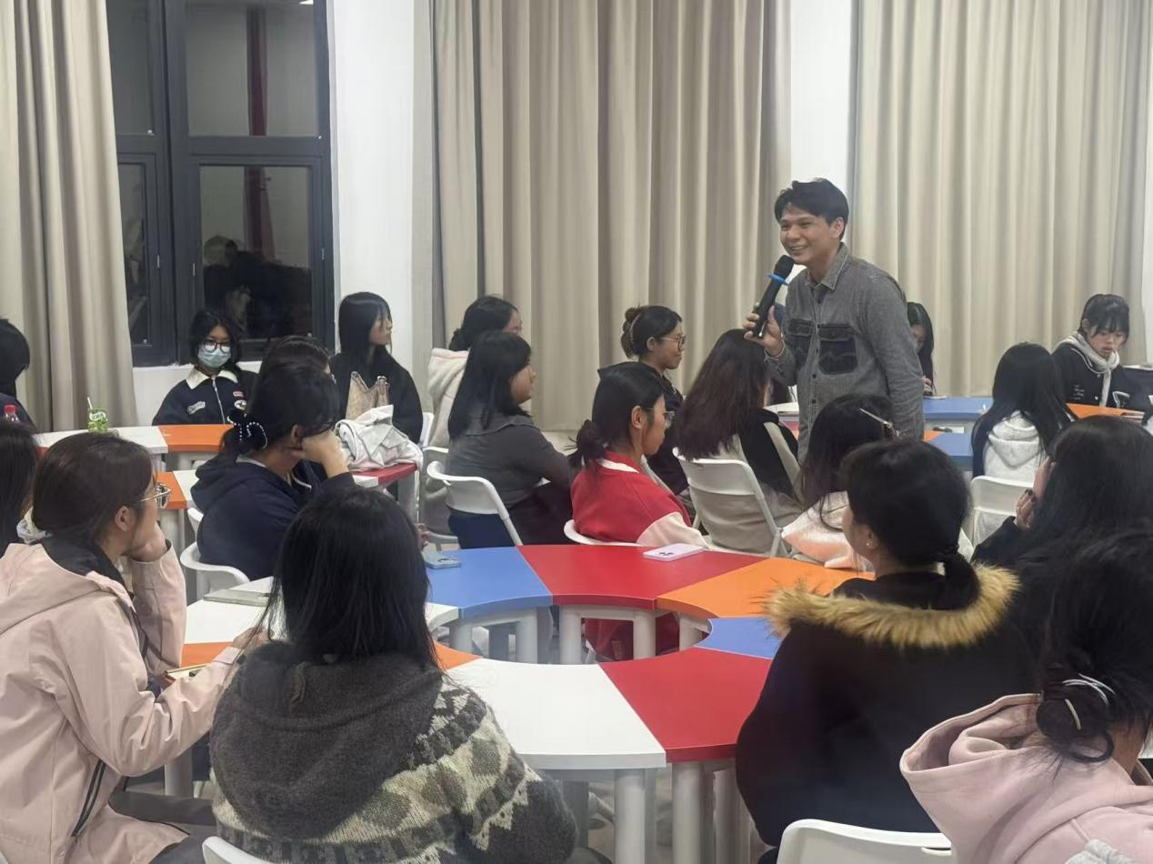 活动中,陈主任以“明确角色定位、提升实操技能”为核心目标,为全体心理委员搭建了系统学习、交流共进的平台。团体辅导活动紧扣心理委员工作实际需求,从“心理委员概述”“团体领导者必备能力”“团体辅导技术设计”三大模块展开,通过理论讲解、案例分析、活动方案拆解等多元形式,系统传递了团体辅导活动设计的实用技巧,让班级心理委员们清晰认识到心理委员的角色价值——既是团体活动的组织者,也是同学心理健康的陪伴者、支持者,学会用专业的活动设计为同学们搭建心理支持平台。