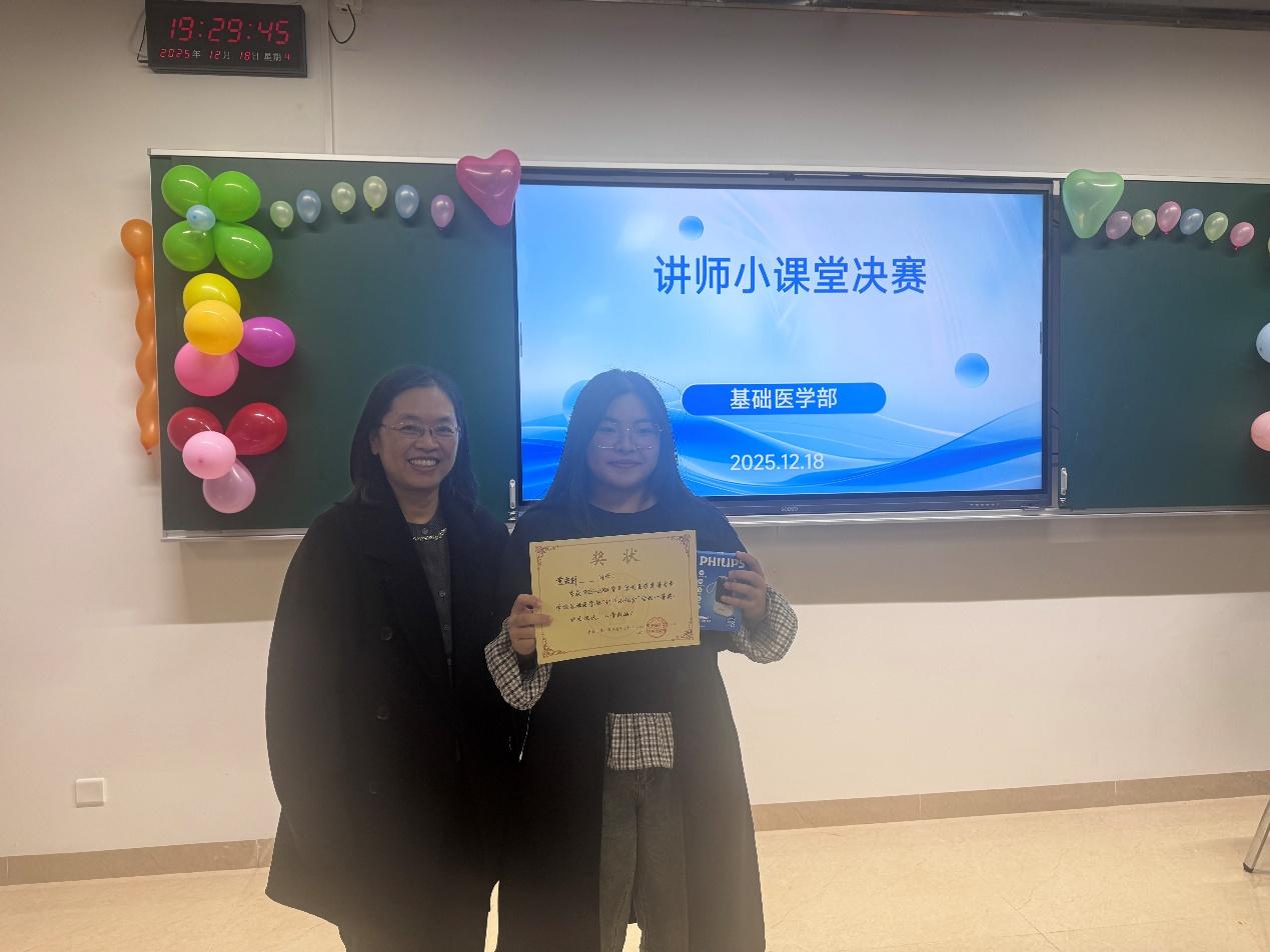本次活动将专业学习与教学实践结合,为学生提供锻炼教学能力、展现学术风采的平台,引导关注医学传承与教育创新。未来,基础医学部将持续深化"以赛促教、以讲促学"模式,推动医学生提升教学传播与学术表达能力,为培养兼具临床技能与教学潜质的复合型人才奠定基础。