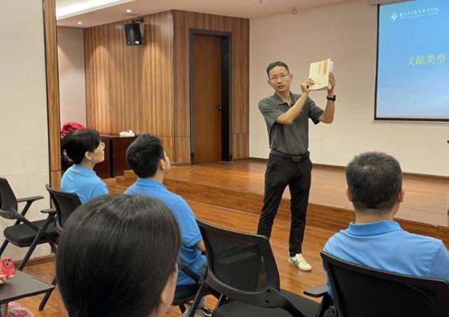 图书馆副馆长,我部朱建彬老师坚持以专业服务赋能行业发展,积极投身行业知识共享。2025年8月,他受邀在洛江区图书馆开展《载籍文脉:文献类型与书籍装帧版本的变迁》基础业务培训,系统梳理文献发展史与书籍装帧技艺演变,助力全体馆员夯实专业基础,提升文献整理与读者服务能力。此次培训既是专业素养的集中提升,也是我部教师服务社会、推动文化传承的具体实践。